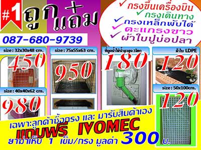 3.สำหรับลูกค้าที่สะดวกมารับเอง ท่านจะได้รับแถมฟรี ยาฆ่าเห็บ ivomec จำนวน 1 เข็ม/กรง (ปริมาณยา คำนวณสัดส่วนตามน้ำหนักสุนัขต่อตัวเป็นสำคัญ)