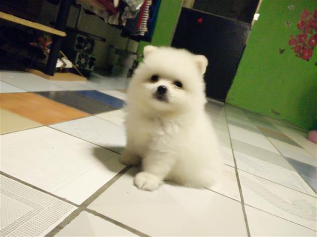 ปอมหน้าหมี สีขาว ผู้ ฟอร์มสวย ทรงเตี้ย ขนแน่นฟู อายุ 2 เดือน ถ่ายพยาธิและวัคซีนแล้ว สนใจสอบถามรายละเอียด