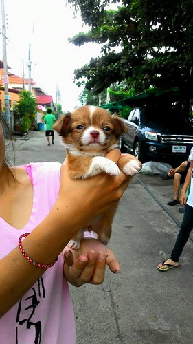 ชิวาวาขนยาว สีน้ำตาลมาร์คขาว เพศเมีย