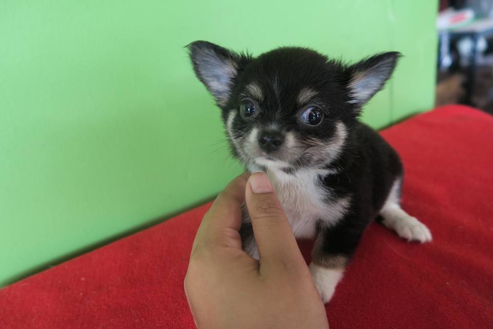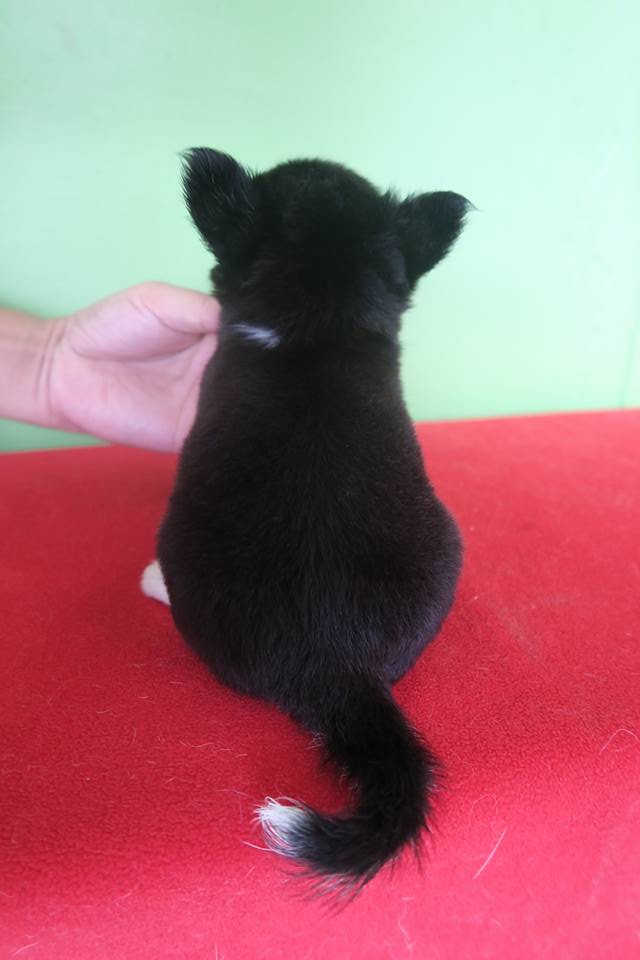ด.ช. มีชัย ชิวาวาเพศผู้ขนยาว แบล็คแทน มีคิ้วมีแก้ม มีถุงเท้า หางพู่กันขาวไซส์เล็ก หาบ้านใหม่จร้า