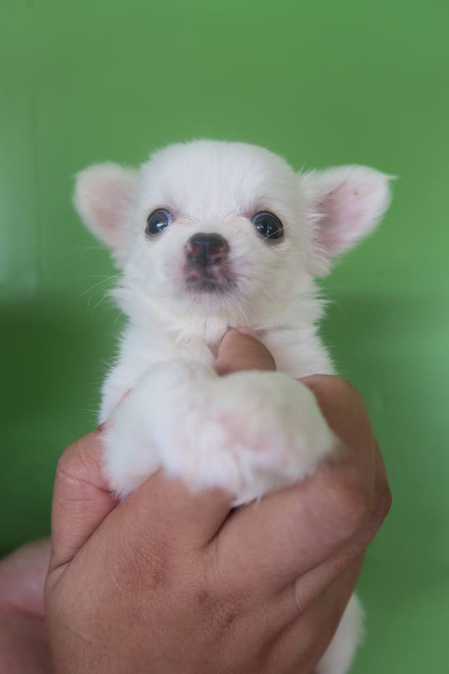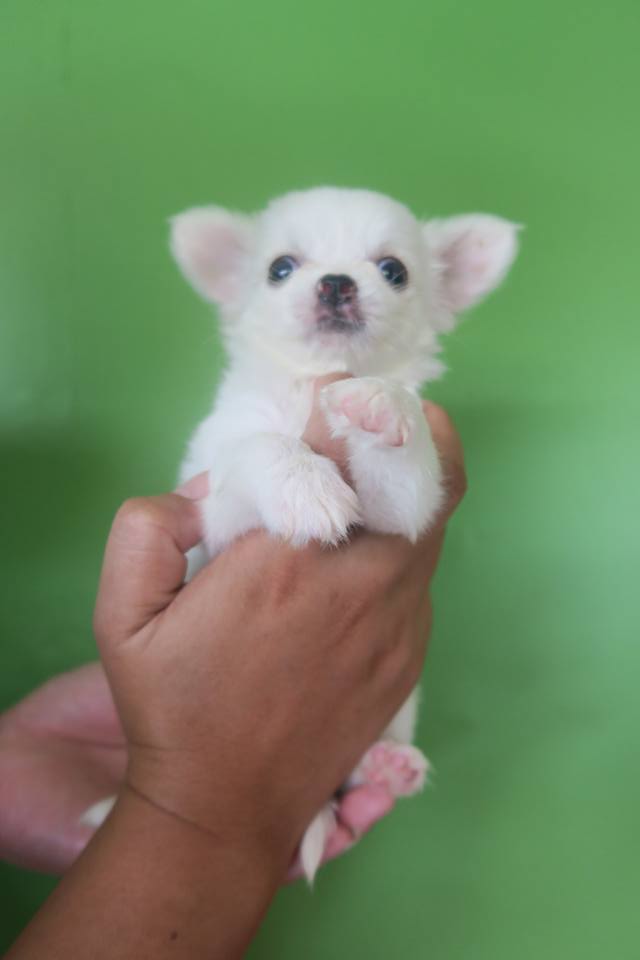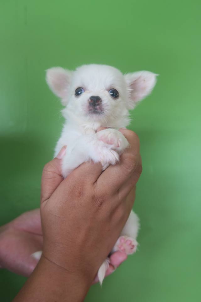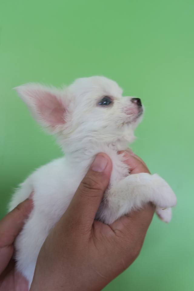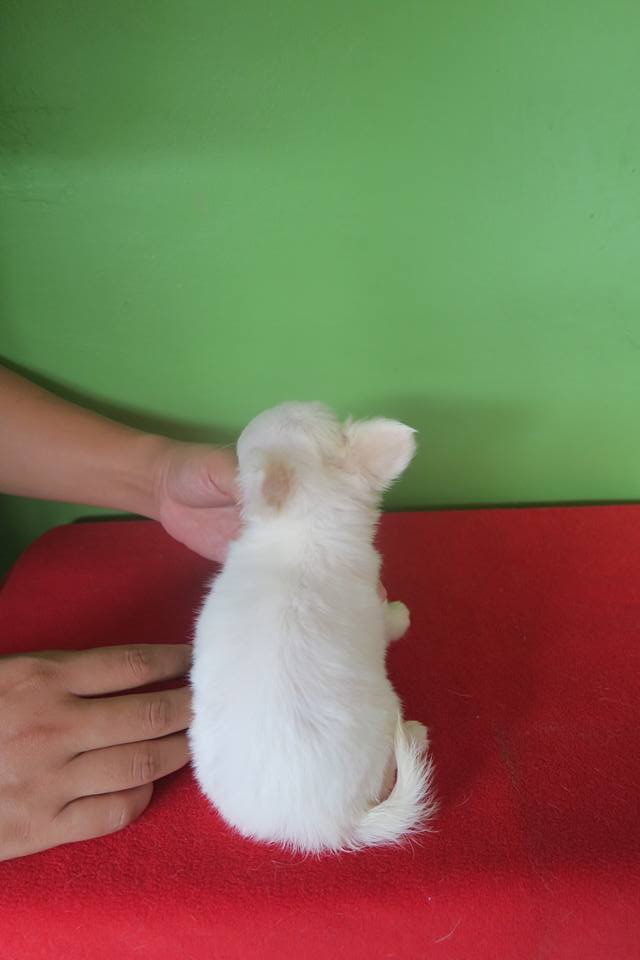 ด.ญ. มีเงิน ชิวาวาเพศเมียขนยาว ขาวล้วน 7500