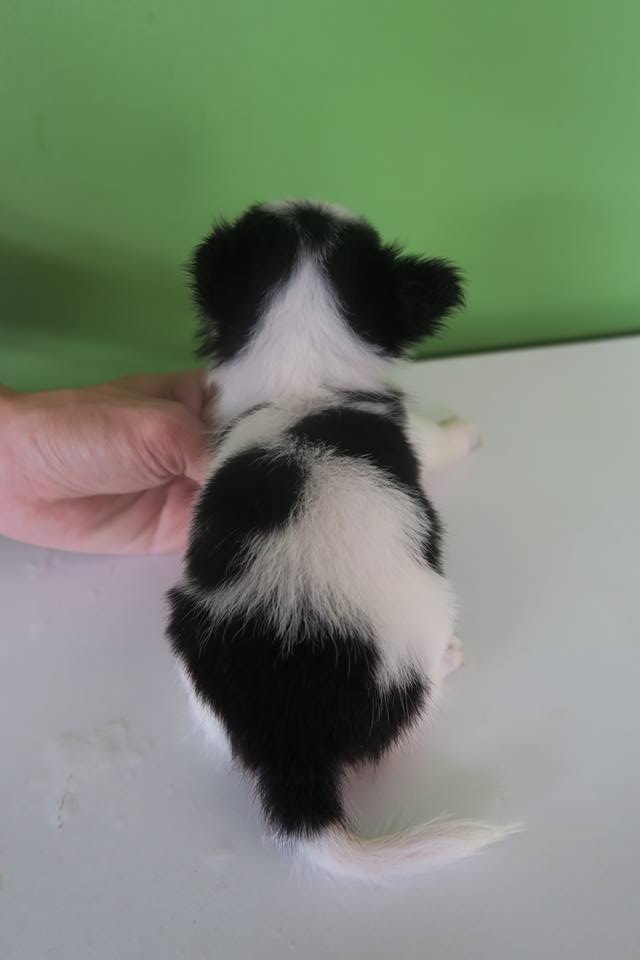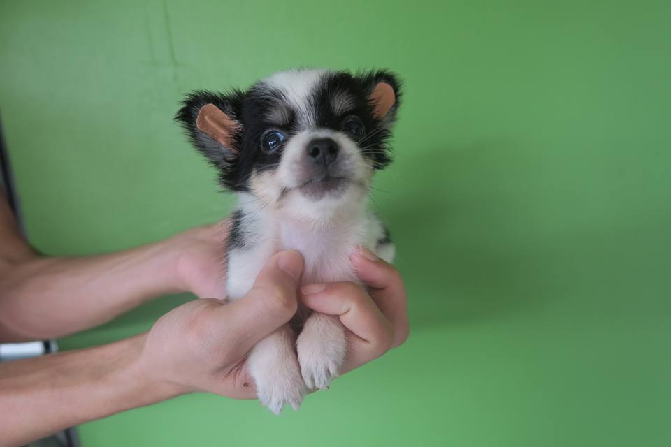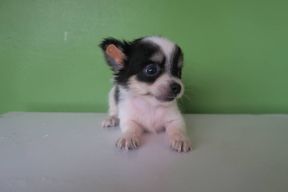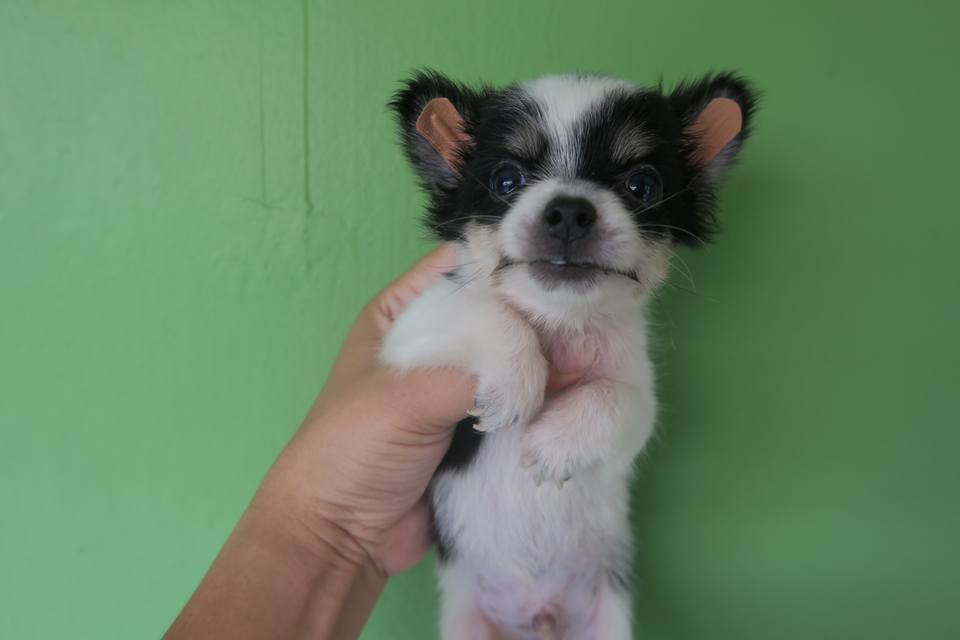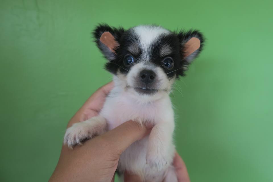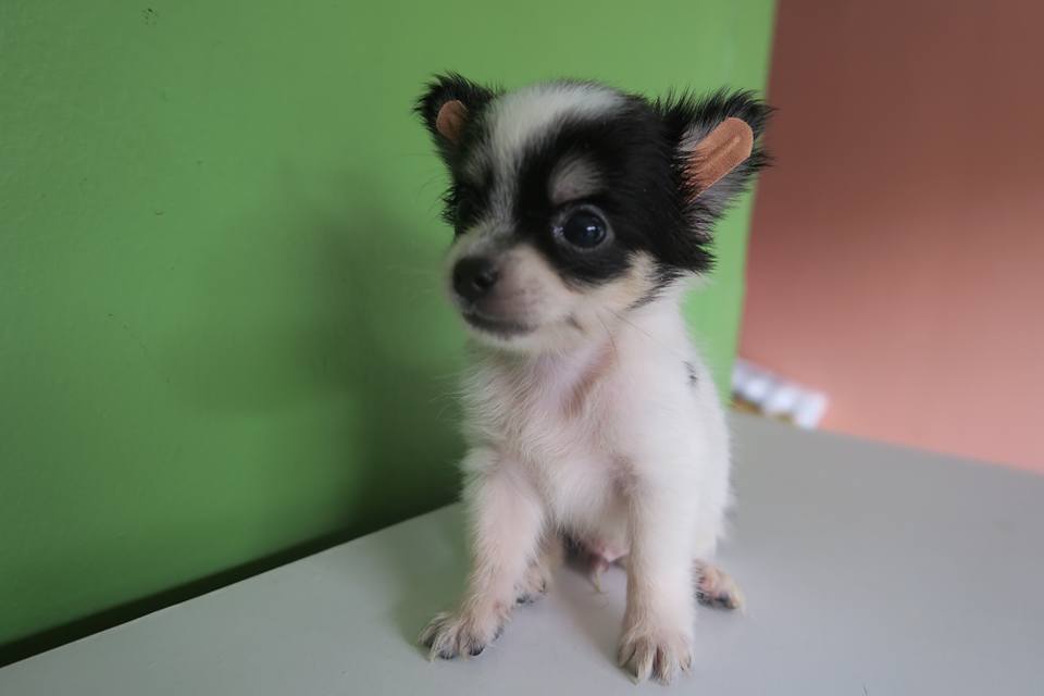 ชิวาวาขนยาว เพศผู้ สีขาวดำ มีคิ้ว มีแก้ม ไซส์เล็ก น้องราคา 5500 บาท