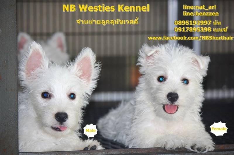 จำหนายลูกสุนัขสายพันธุ์เวสตี้(West Highland White Terrier) เพศผู้ 1 เพศเมีย 1