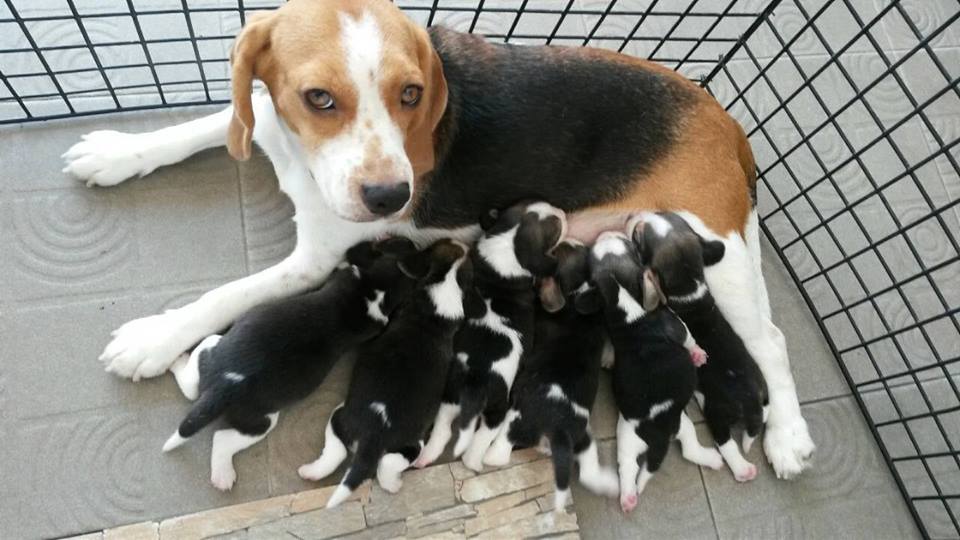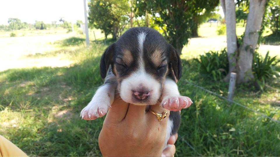 ลูกสุนัขบีเกิ้ล 3 สี เพศเมีย 3 ตัว เพศผู้ 3 ตัว คลอดเมื่อวันที่ 5/ส.ค/58