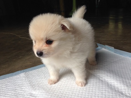 (น้องได้บ้านแล้วค่ะ) น้องก็อตจิ - ปอมแท้ ขนฟูสีครีม พ่อแม่มีใบรับรองสายพันธ์ เพศผู้ อายุ 35 วัน