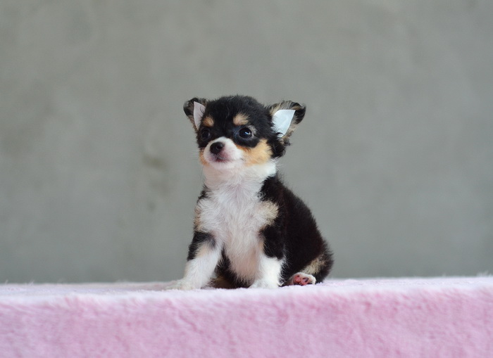 น้องกล้วยหอม...ชิวาวาเพศเมียขนยาวสีขาว แบลคแทนมาร์กกิ้ง ตัวเล็ก น่ารักมาก