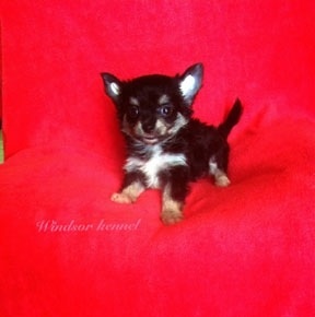 ขายชิวาวาขนยาว เพศเมีย สิแบร็คแทน มีคิ้ว มาร์คแป๊ะ ราคา7500 พร้อมใบเพ็ต