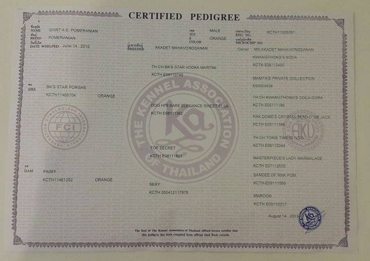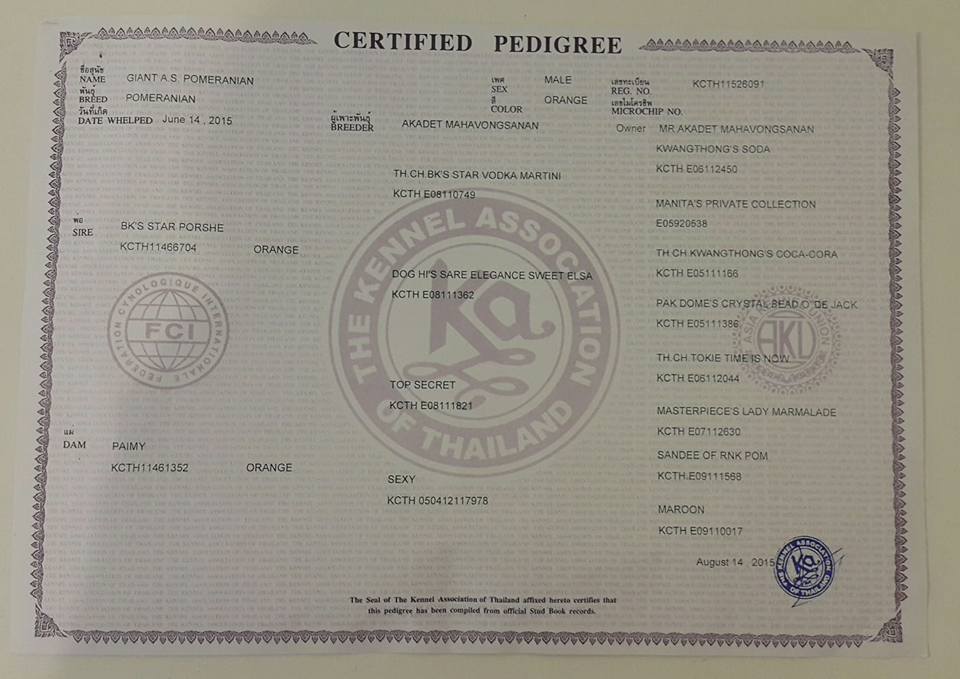 น้องGiant A.S. Pomeranian เพศผู้อายุ 3 เดือนสุขภาพแข็งแรง มีใบเพ็ดสายเลือด Th.ch.Vodka