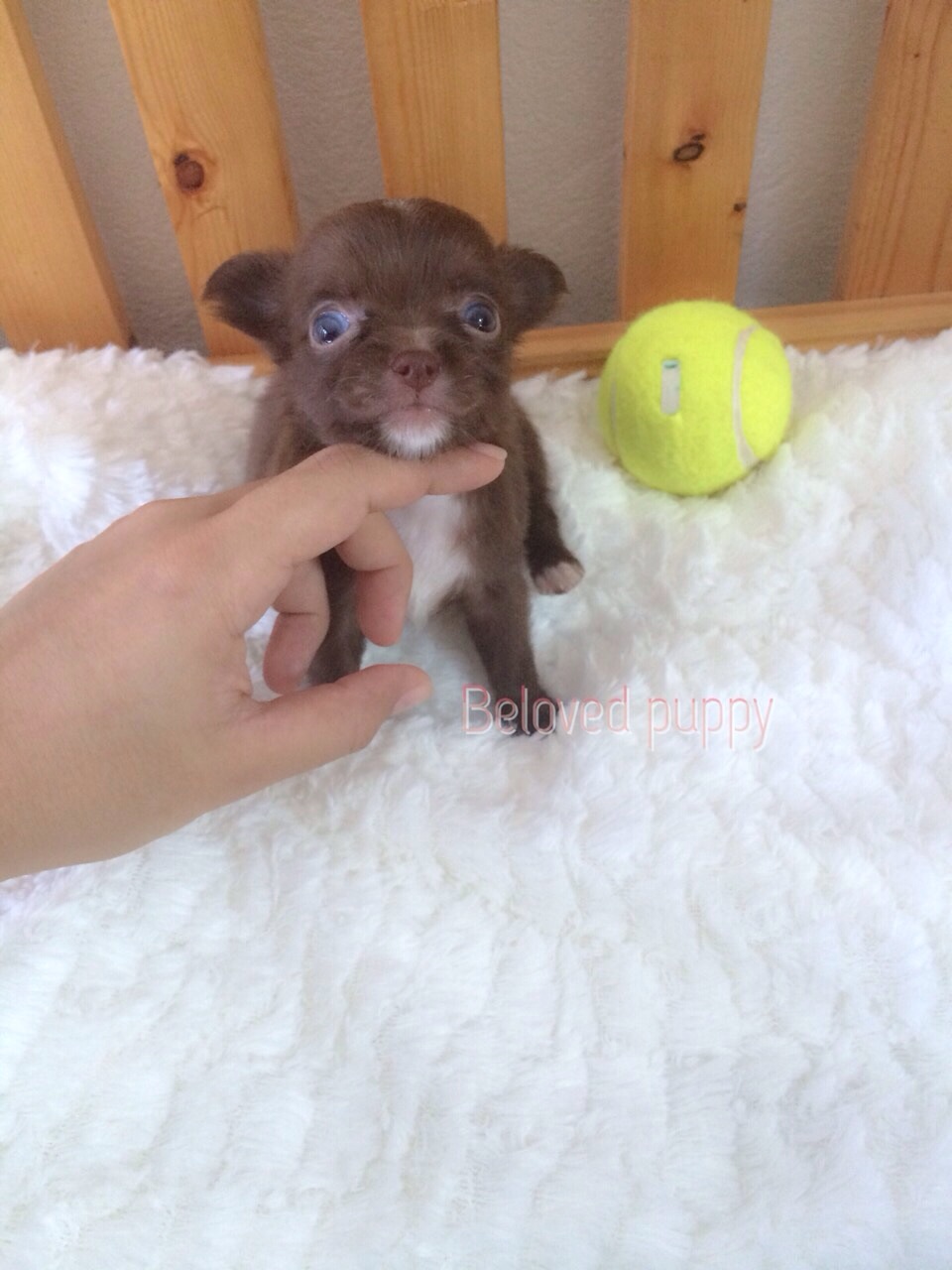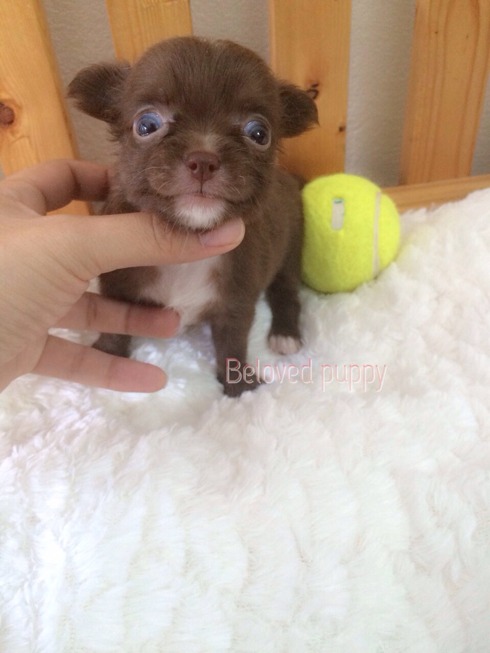 น้องชิวาวาเพศเมีย ขนยาว สีช็อก ตาสีฟ้าอมเทา ไซส์จิ๋วๆ