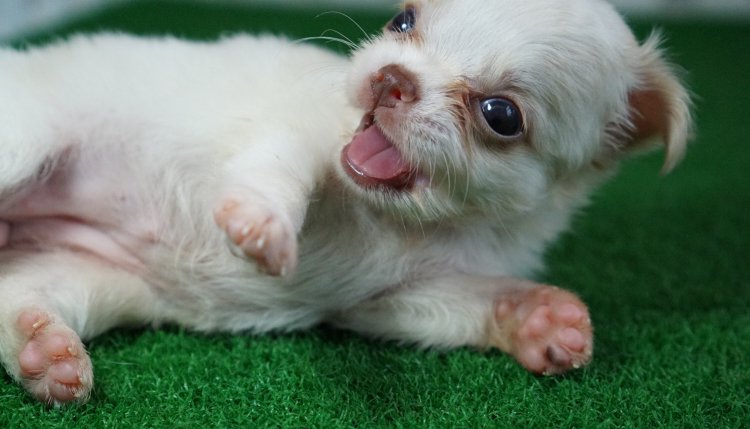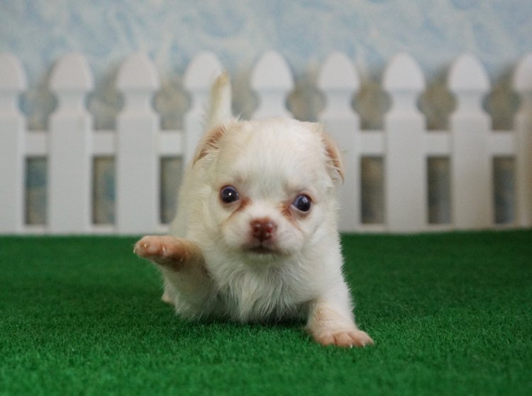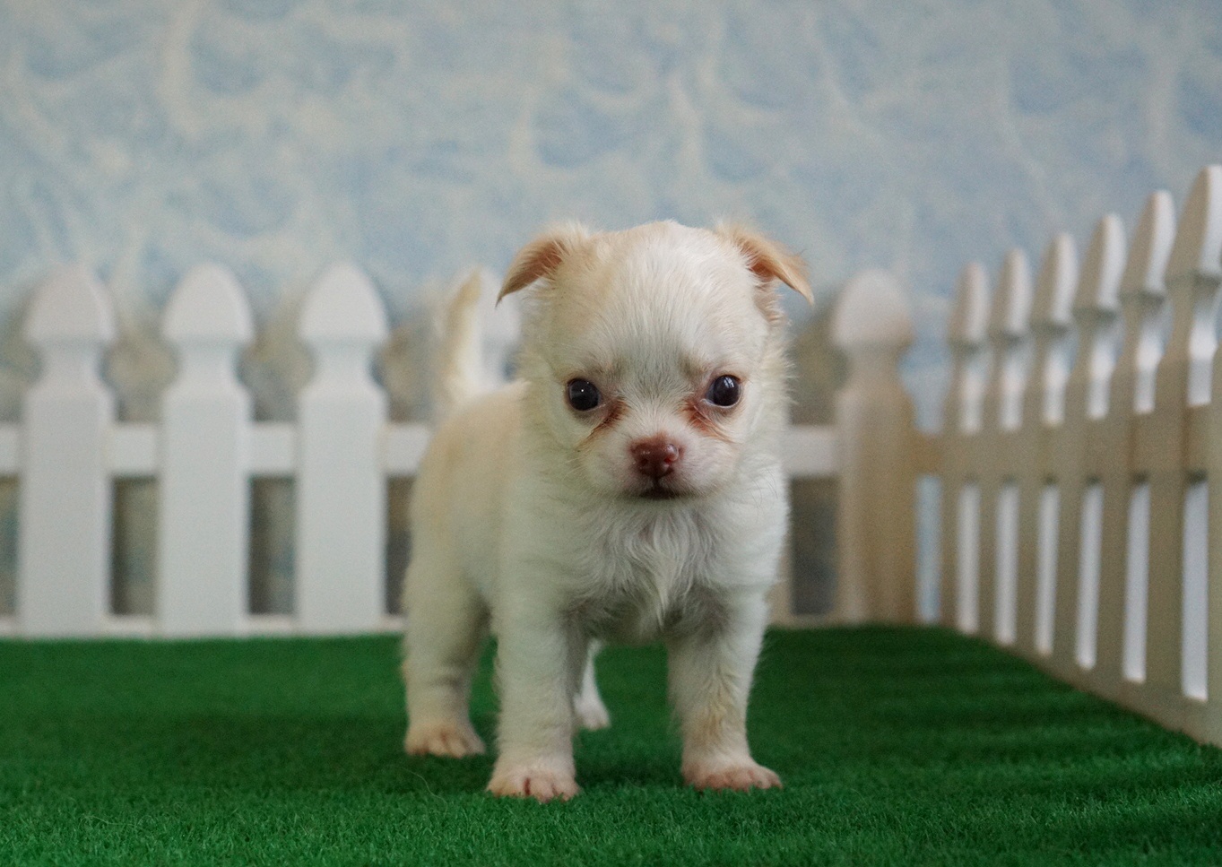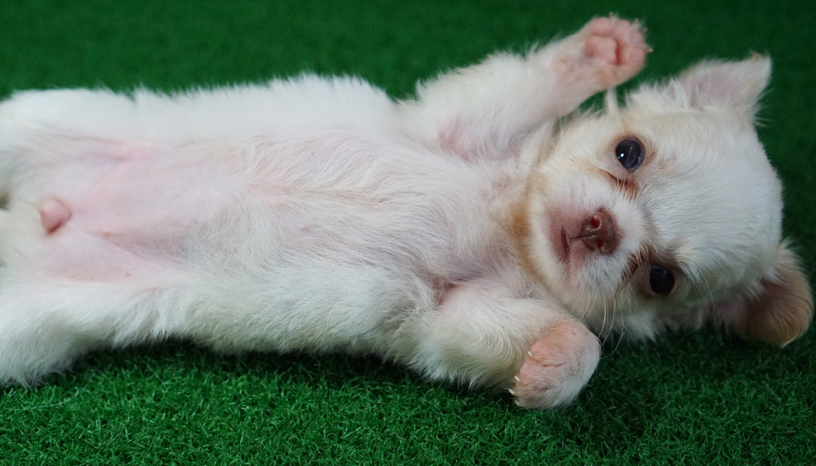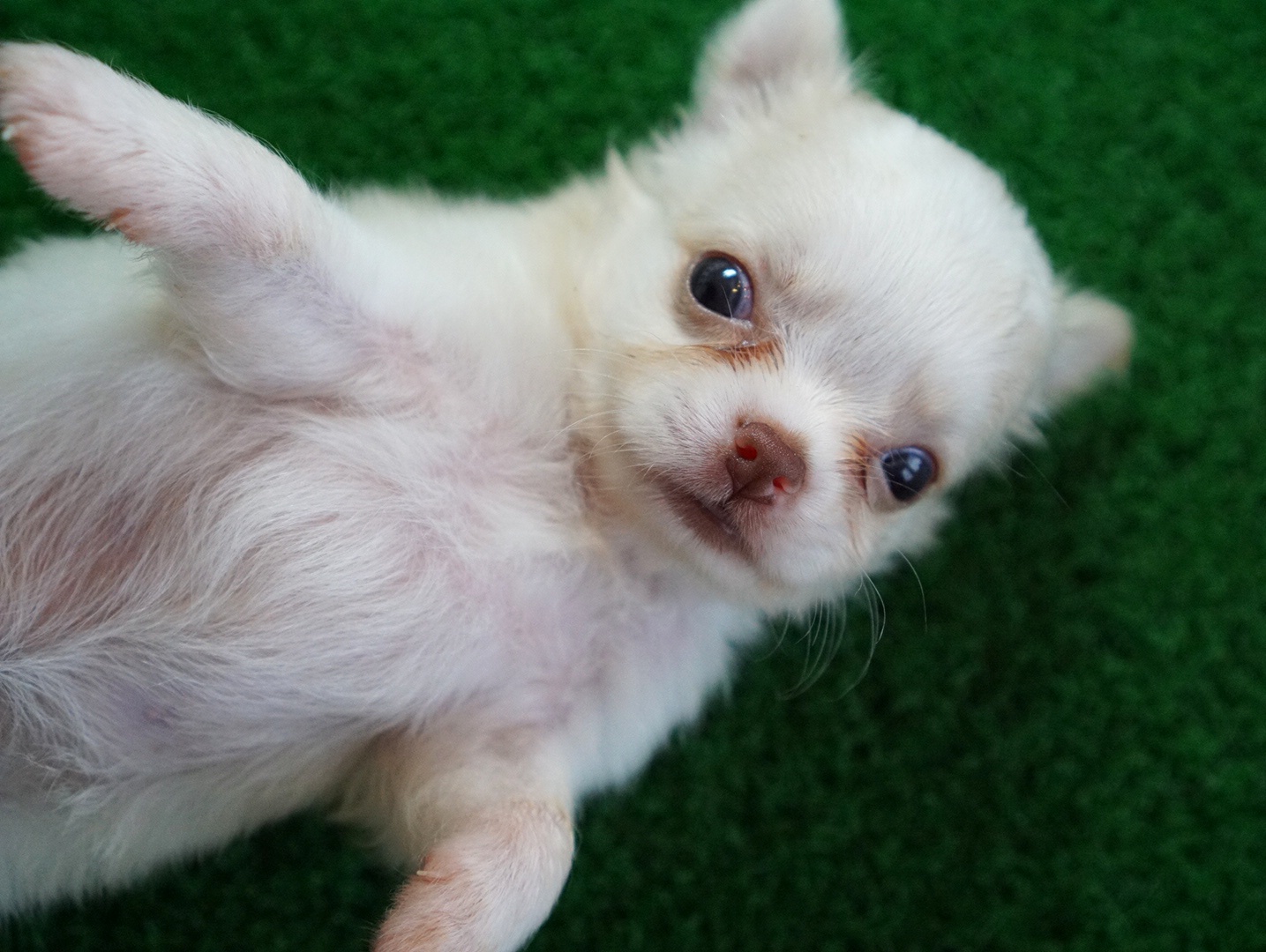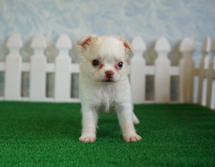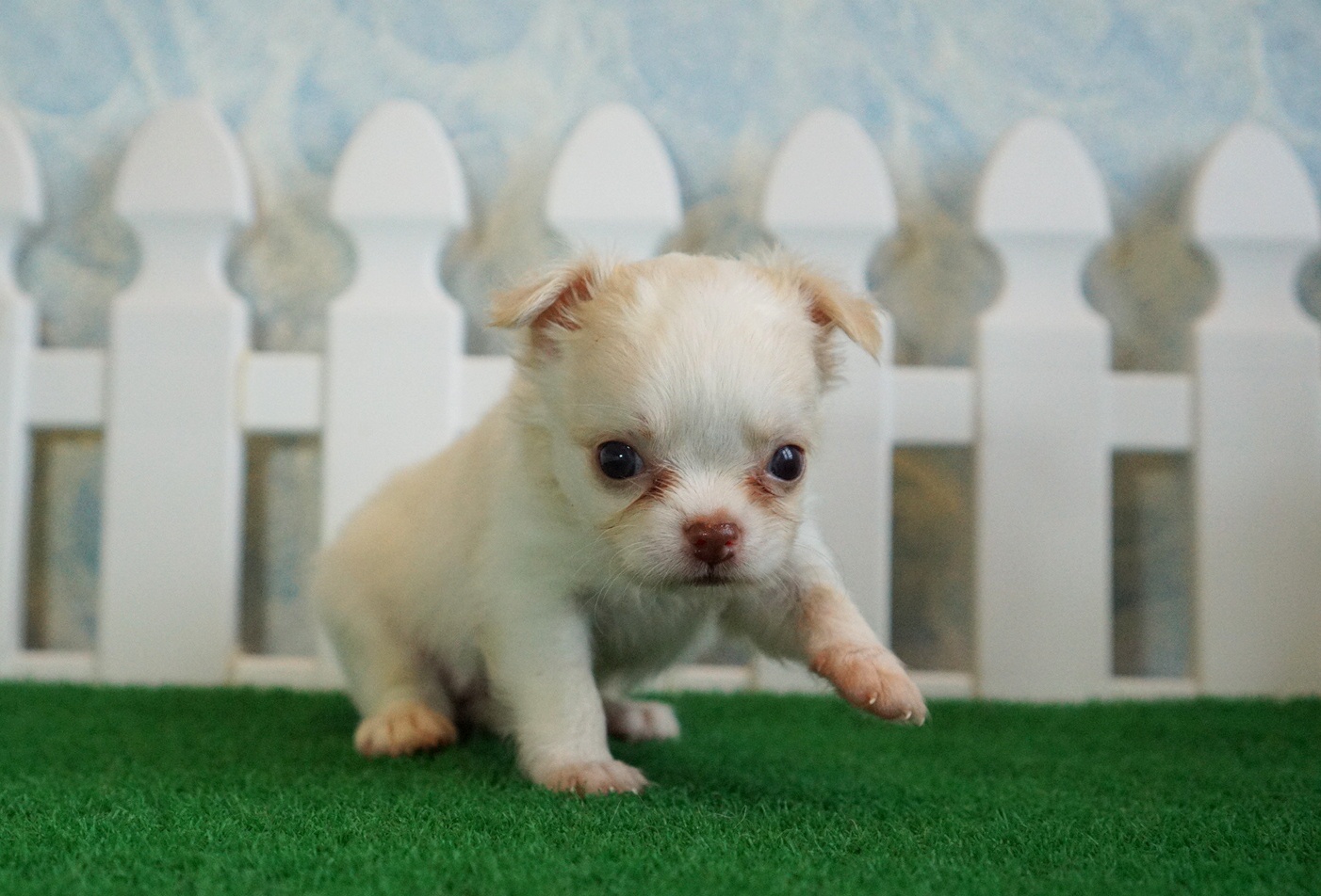 ชิวาวาขนยาว สีขาวครีม จมูกตับ ไซส์เล็ก