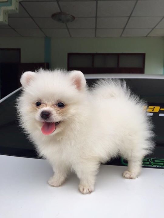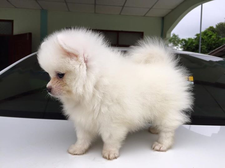 ขายปอมเมอเรเนียนสีขาวหน้าหมีขนแน่นๆ9500 บาท