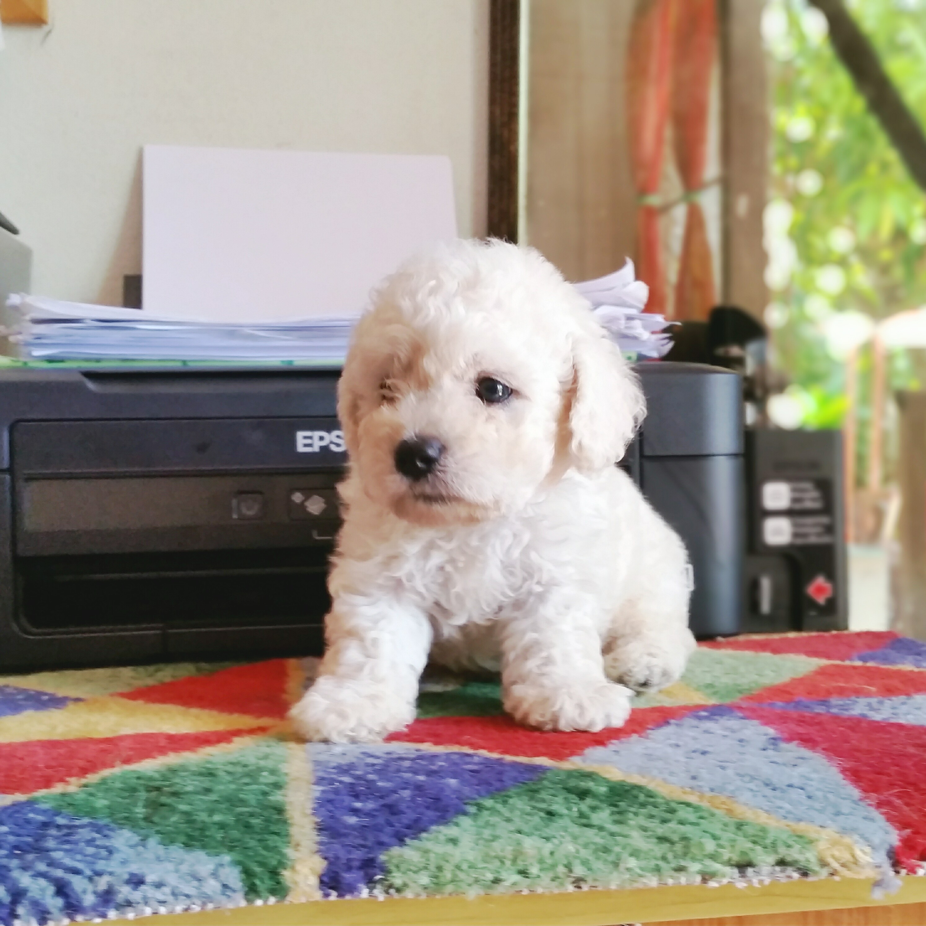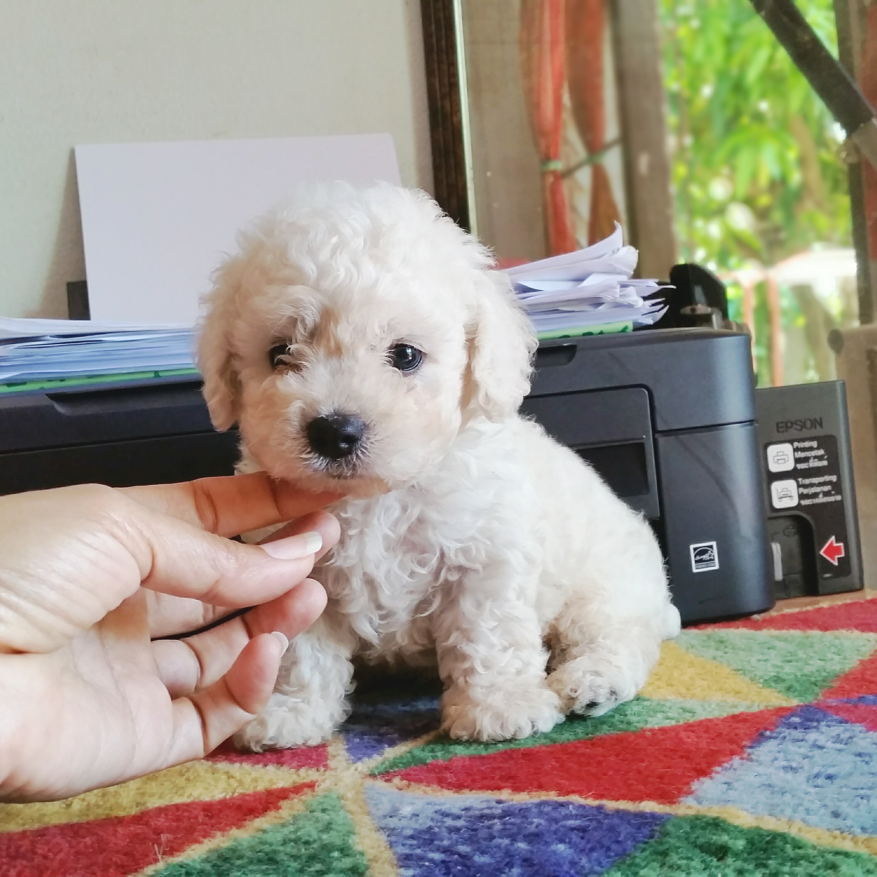 พุดเดิ้ล ทอย หน้าตุ๊กตา สีขาว ขนแน่น หยิกอายุเดือนกว่า เพศผู้ แข็งแรง กินเก่ง