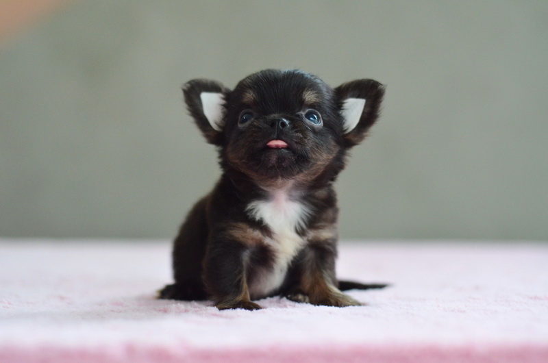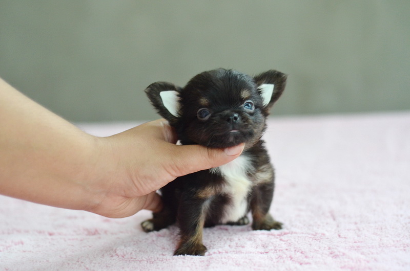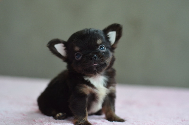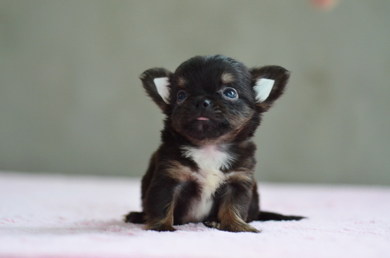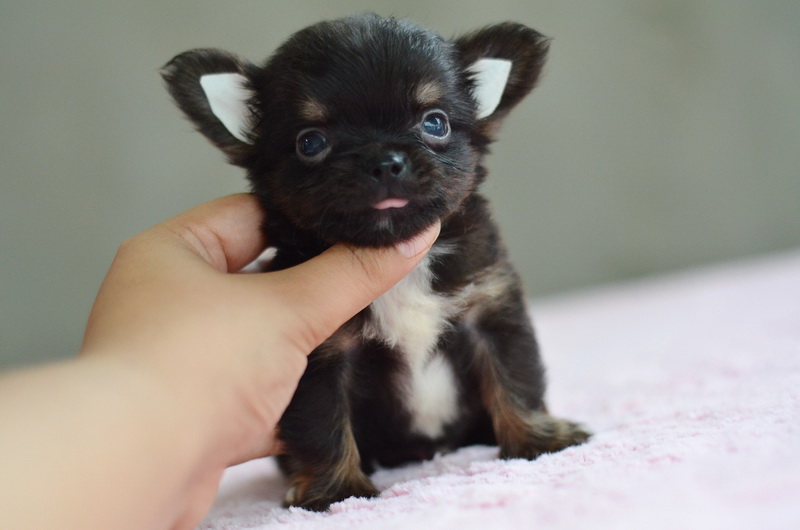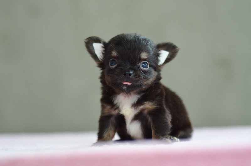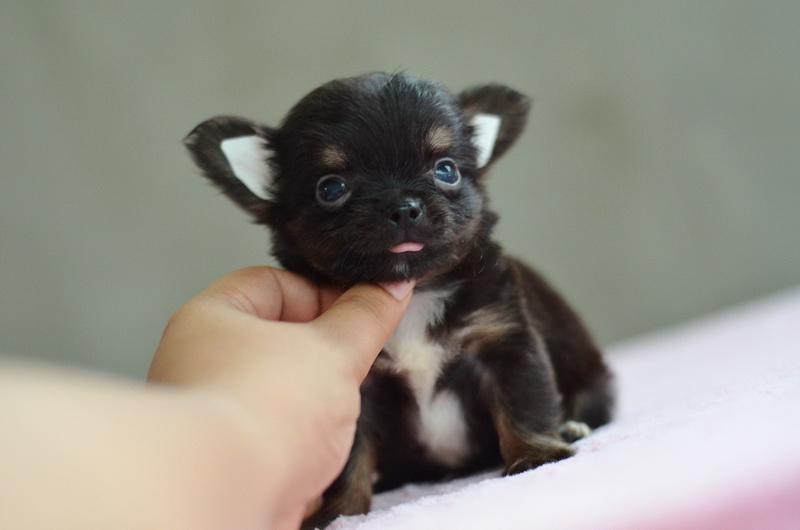ชิวาวาเพศผู้ขนยาวสีแบลคแทน หัวโตหน้าสั้นสวย ไซด์เล็ก 11000