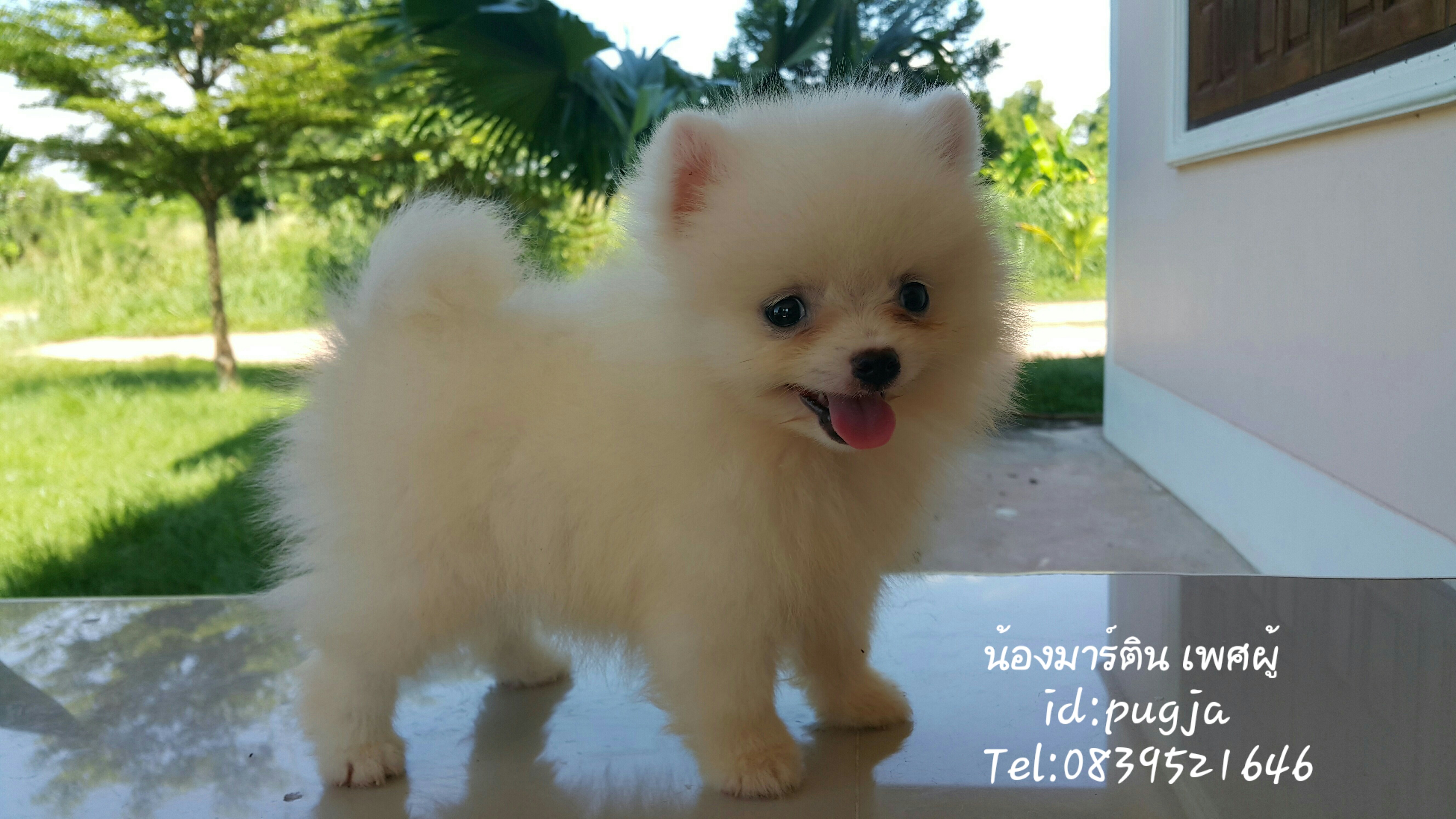 Pomeranian for sale ปอมเมอเรเนี่ยนสีขาว ผู้1 เมีย1 สวย จัดส่งได้