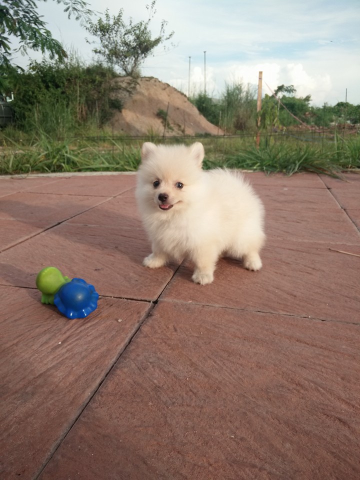 ปอมเพศเมียฟอร์มเลี้ยงเล่นจ๊ะพร้อมถ่ายพยาธิ เกิดวันที่ 15 สิงหาคม 2558 น่ารักแข็งแรง ทานอาหารเองได้แล้วนะค่ะ พร้อมย้ายบ้านจ๊ะลูกค้าที่อยู่ลำปางหรือจังหวัดใกล้เคียงมาดูเด็กๆได้ที่บ้านข้างเซนทรัลลำปางทางเรามีบริการจัดส่งและส่งทางเครื่องบินด้วยค่ะ