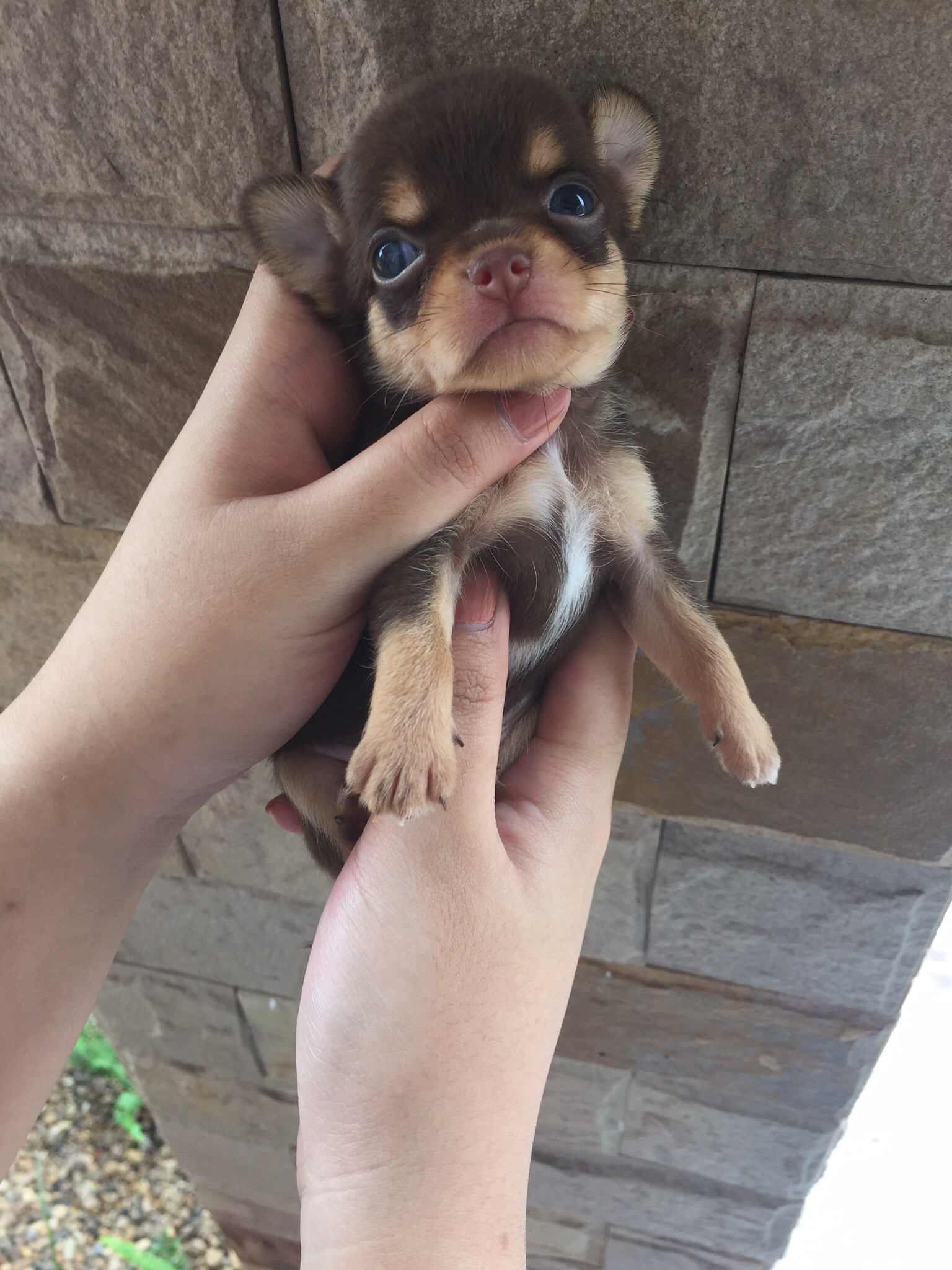 ชิวาวา เพศผู้ขนสั้น สีช็อคโกแลต&แทน ใบเพ็ดดีกรีจากสมาคมเต็มใบ น้องเป็นไซส์เล็ก ในรูปอาจจะดูใหญ่แต่ตัวจริงตัวเล็กค่ะ พ่อแม่สีช็อคไซส์เล็ก พร้อมถ่ายพยาธิและวัคซีนค่ะสนใจดูรูปน้องเพิ่มเติมได้ในไลน์ id: wiwisana23 โทร 085-497-1956 หรือเข้ามาจองได้ที่บ้านเลยค่ะ