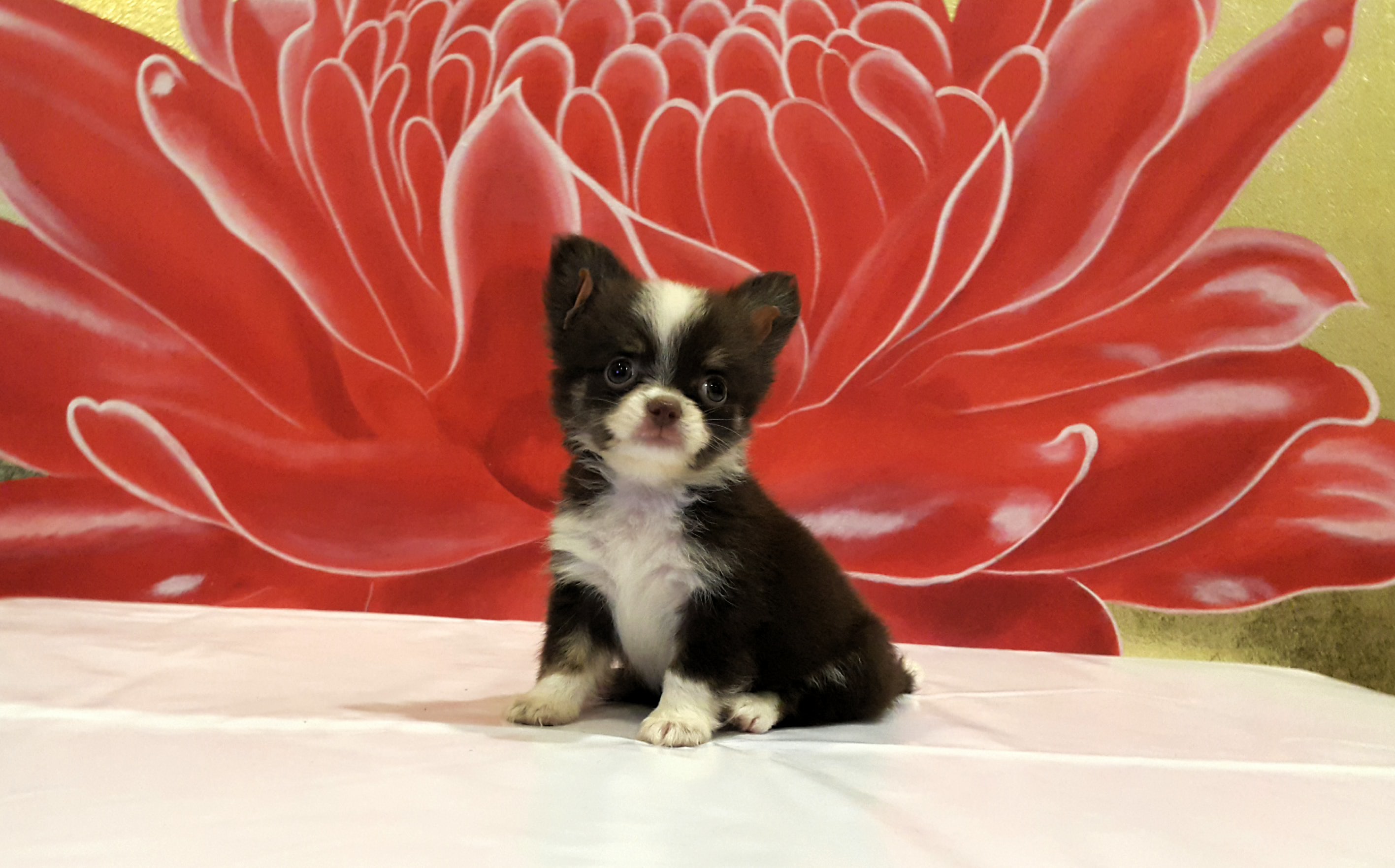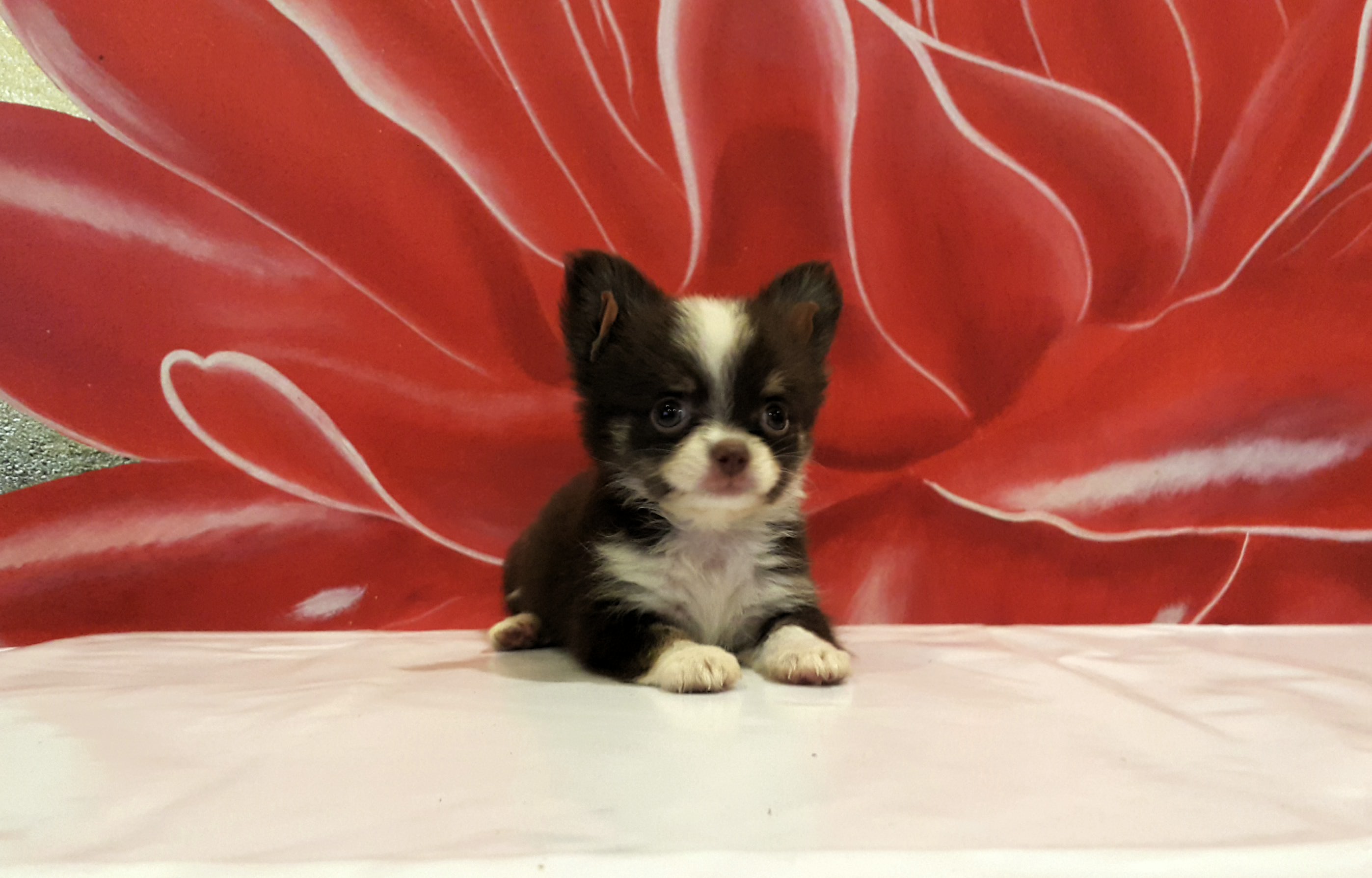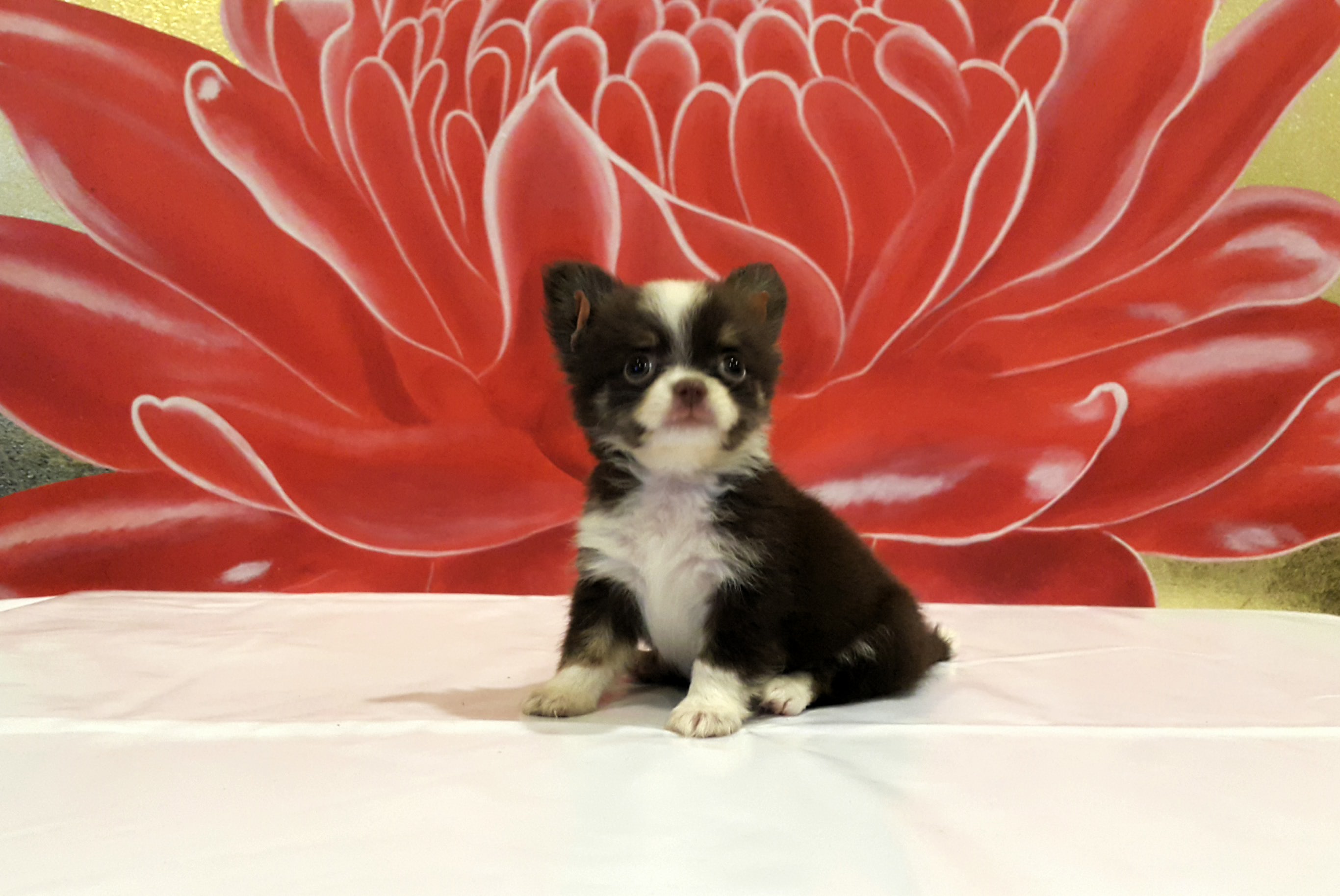 ชิวาวาขนยาว สีชอค/น้ำตาล/ขาว