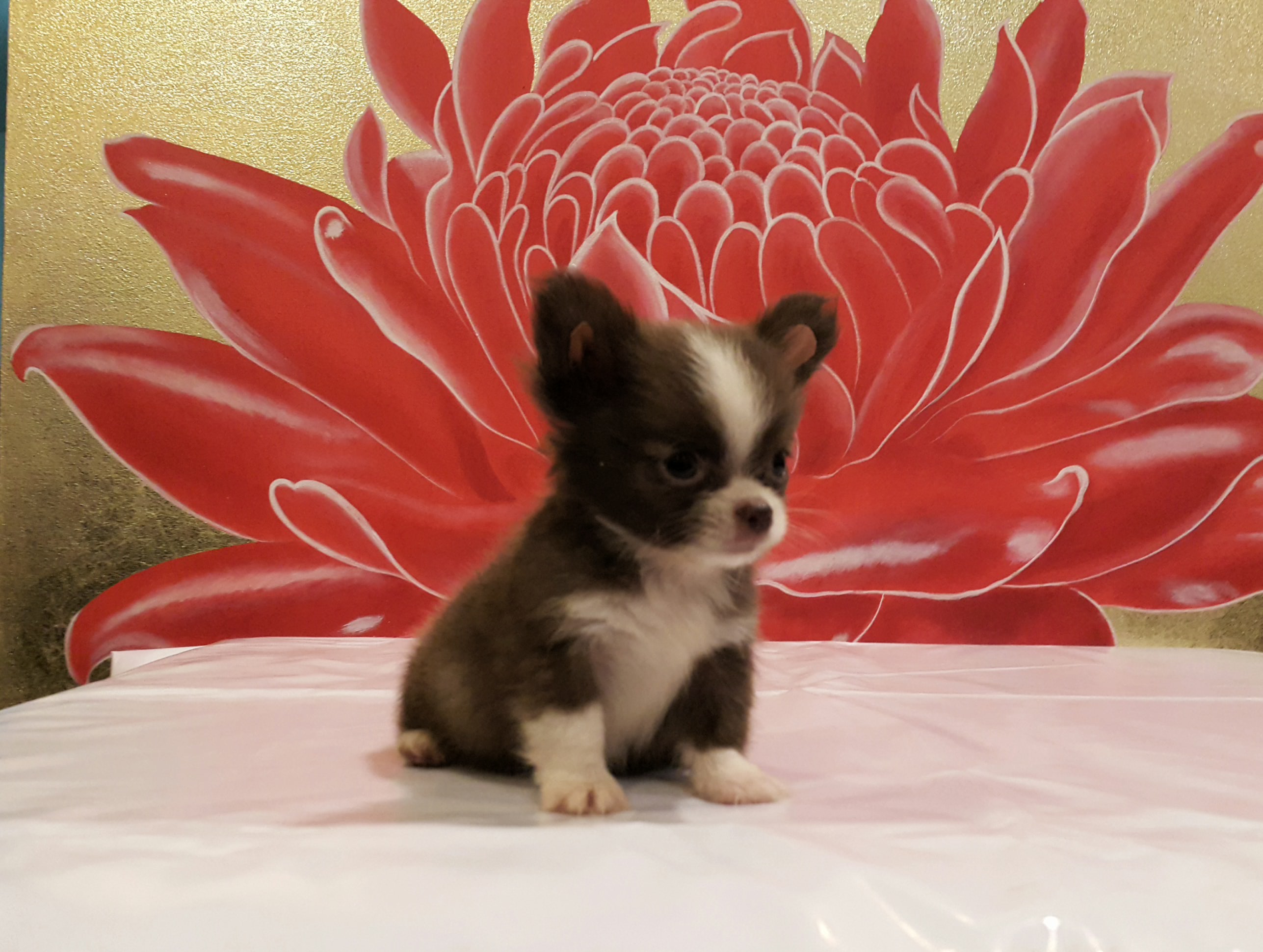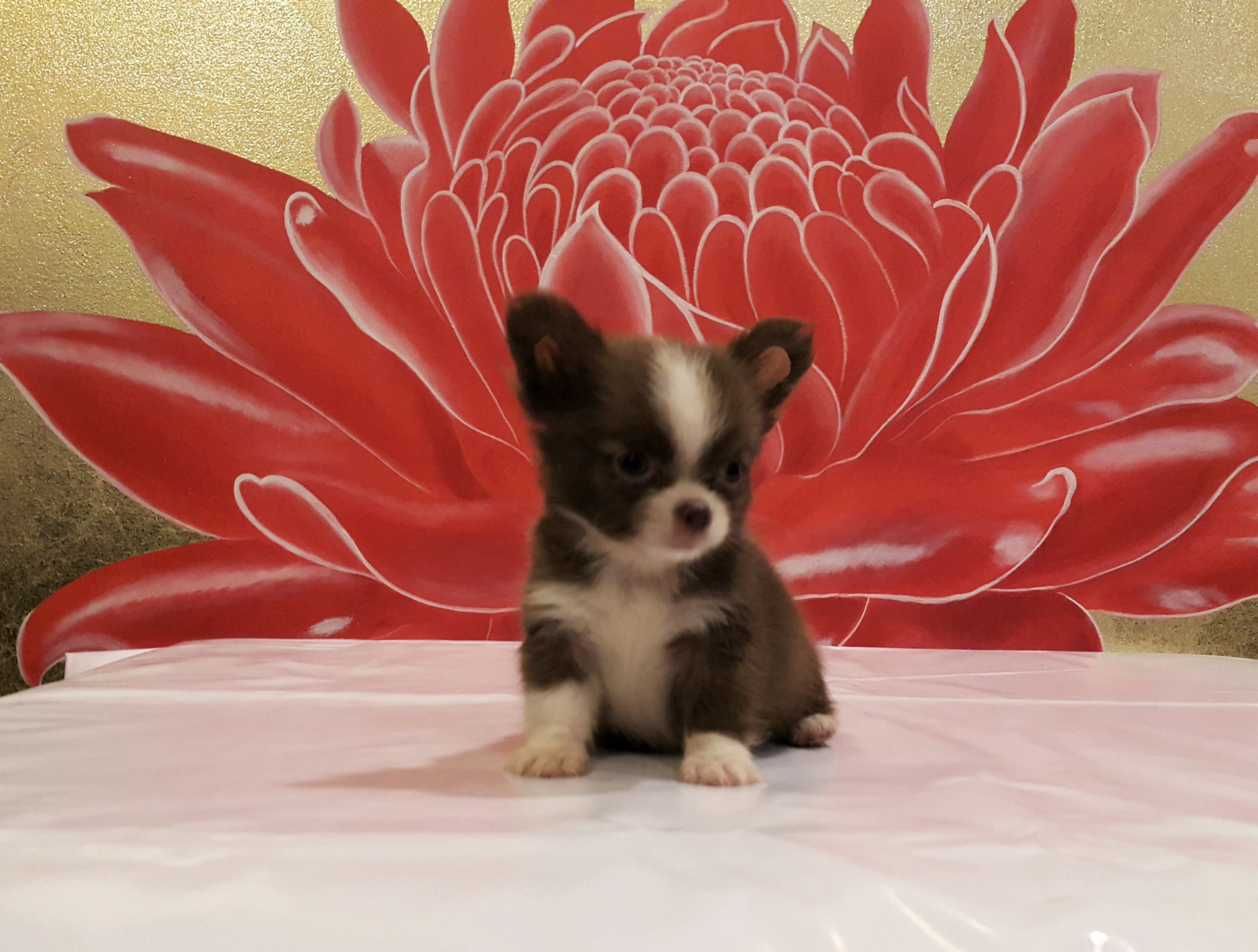 ชิวาวาขนยาว สีชอค/น้ำตาล/ขาว เพศผู้