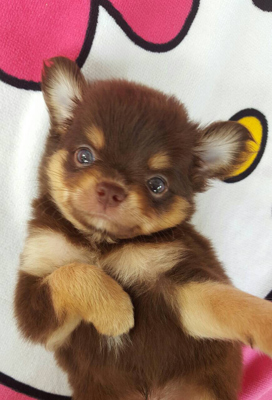 ชิวาว่าขนยาวเพศผู้สีช็อคแทน 8500.-พร้อมส่ง