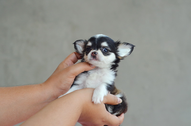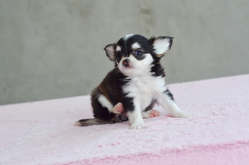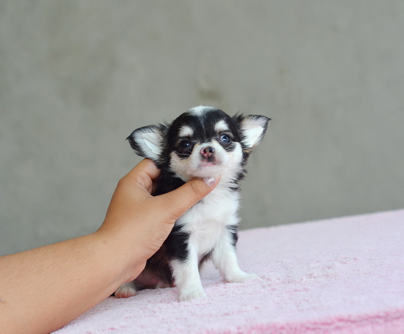 น้องไซบี้....ชิวาวาขนยาวสีขาวดำมีคิ้วมาร์กกิ้งไซบิเรียน เพศผู้ หน้าหวานน่ารัก 13500
