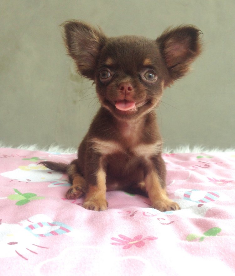 ชิวาวาขนยาวสีชอคเพศเมีย หน้าสั้นๆตากลมๆ สีสวย มาร์กสวย น่ารักมากค่ะ