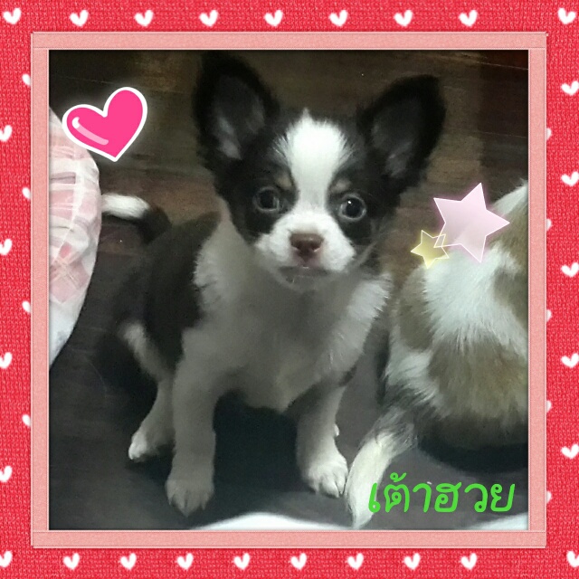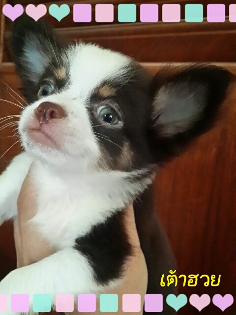 หาบ้านใหม่ค่ะ...น้องเต้าฮวย ชิวาวาขนยาว เพศผู้ สีช็อค-ขาว ไซส์เล็กมากค่ะ น่ารัก น่ากอดสุดๆ ขนหนา 2 ชั้น นุ่มมากๆ น้องเกิดวันที่ 21 ส.ค. 58 นิสัยขี้เล่น ขี้อ้อน ร่าเริงสุดๆ ค่า น้องฉีดวัคซีนรวม 1 เข็ม ถ่ายพยาธิเรียบร้อยค่ะ สุขภาพแข็งแรงมาก ปลอดโรคแน่นอน ทานอาหารเม็ดเองได้แล้วนะคะ เลี้ยงง่ายค่ะ รับประกันสุขภาพ 7 วัน หลังรับน้องไปเลี้ยงนะคะ สนใจสอบถามได้ค่ะ ราคา 6000 บาท สนใจติดต่อที่ 089-530-9008 , 081-649-6153 Line : cookieza (อุ้มค่ะ)
