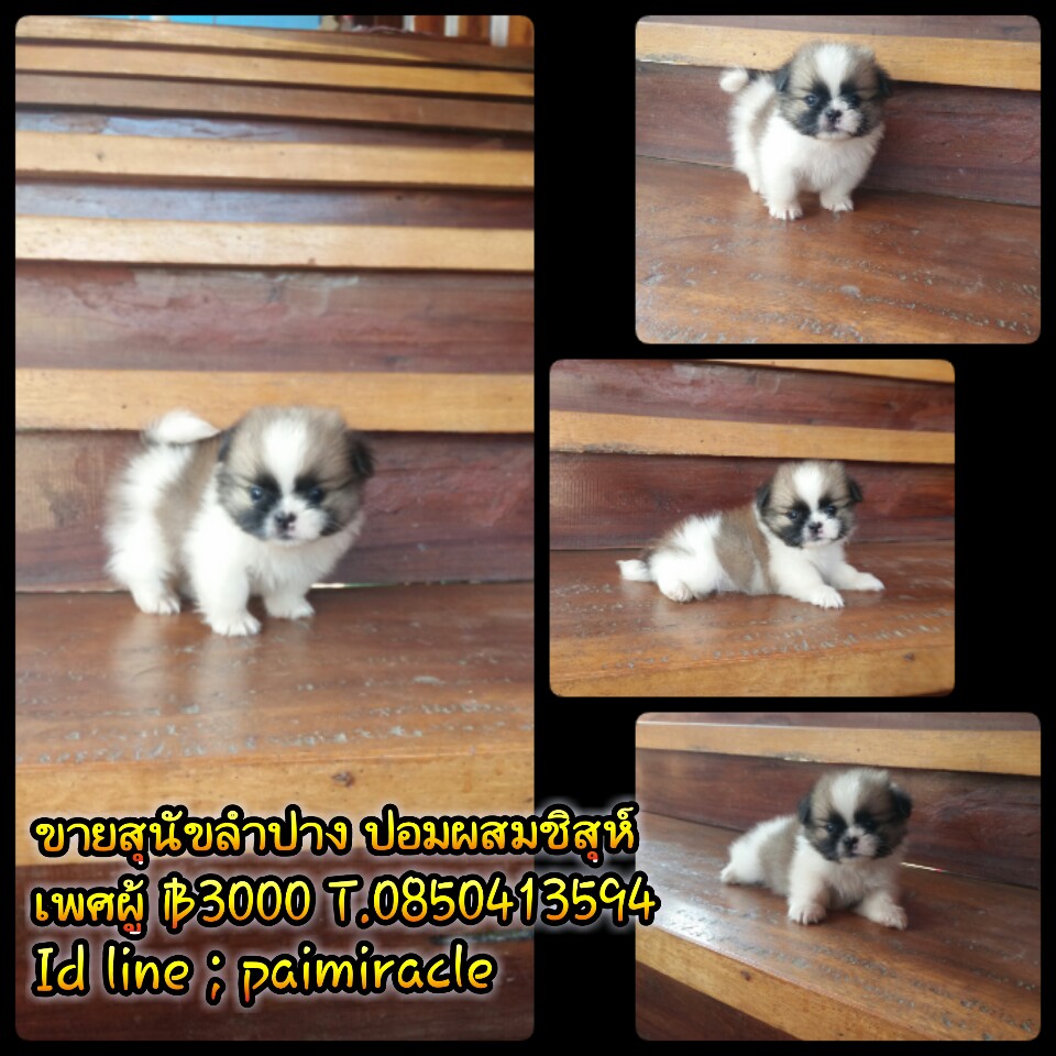 ปอมผสมชิสุเพศผู้2 สามตอนสามสี จ๊ะพร้อมถ่ายพยาธิ เกิดวันที่ 9 กันยายน 2558 น่ารักแข็งแรง ทานอาหารเองได้แล้วนะค่ะ พร้อมย้ายบ้านจ๊ะลูกค้าที่อยู่ลำปางหรือจังหวัดใกล้เคียงมาดูเด็กๆได้ที่บ้านข้างเซนทรัลลำปางทางเรามีบริการจัดส่งและส่งทางเครื่องบินด้วยค่ะ