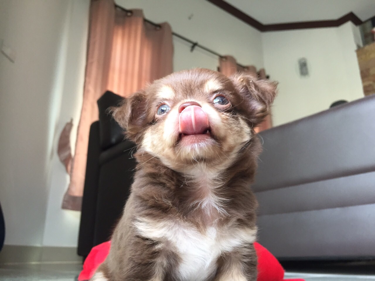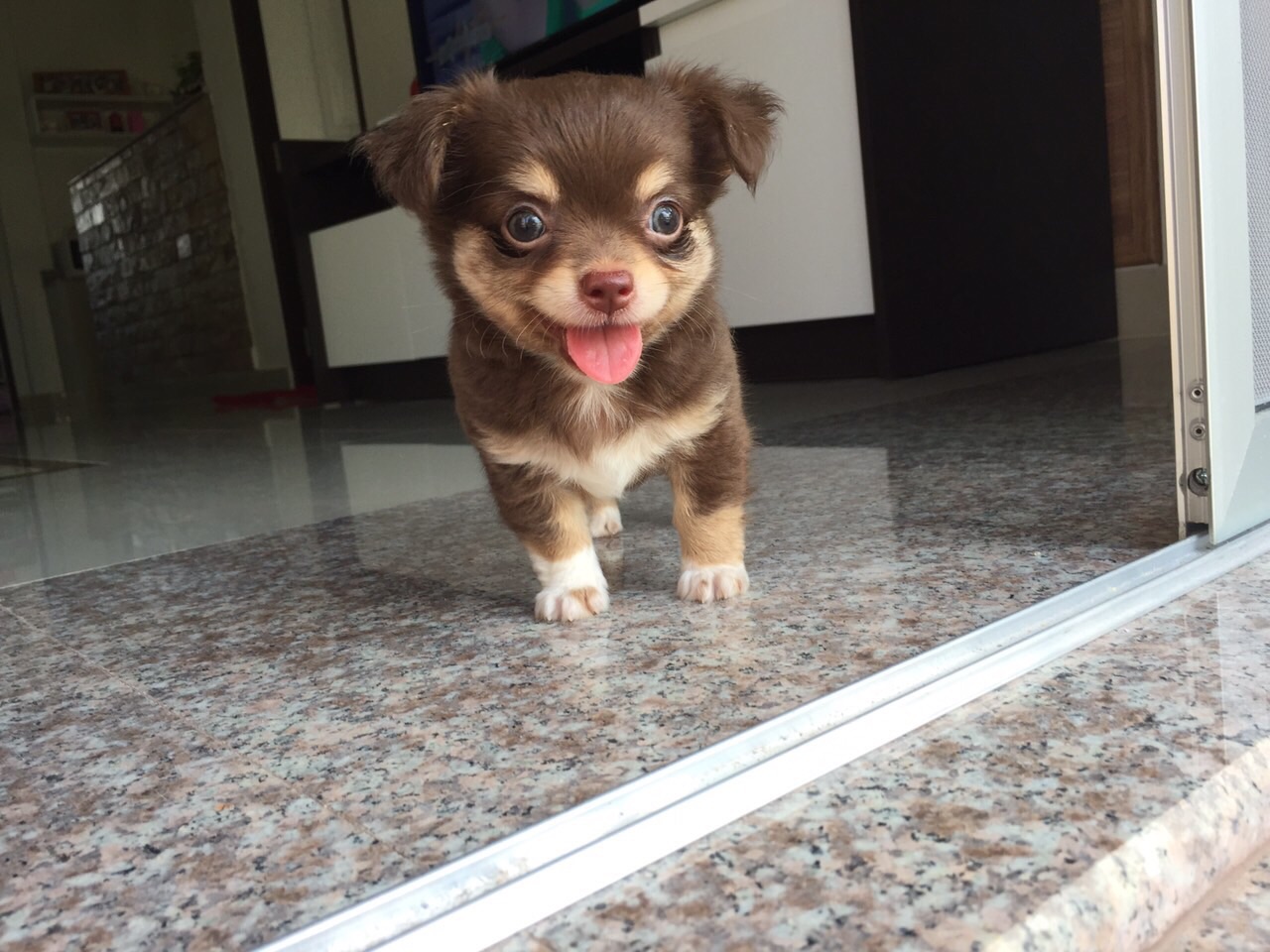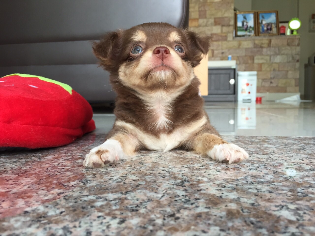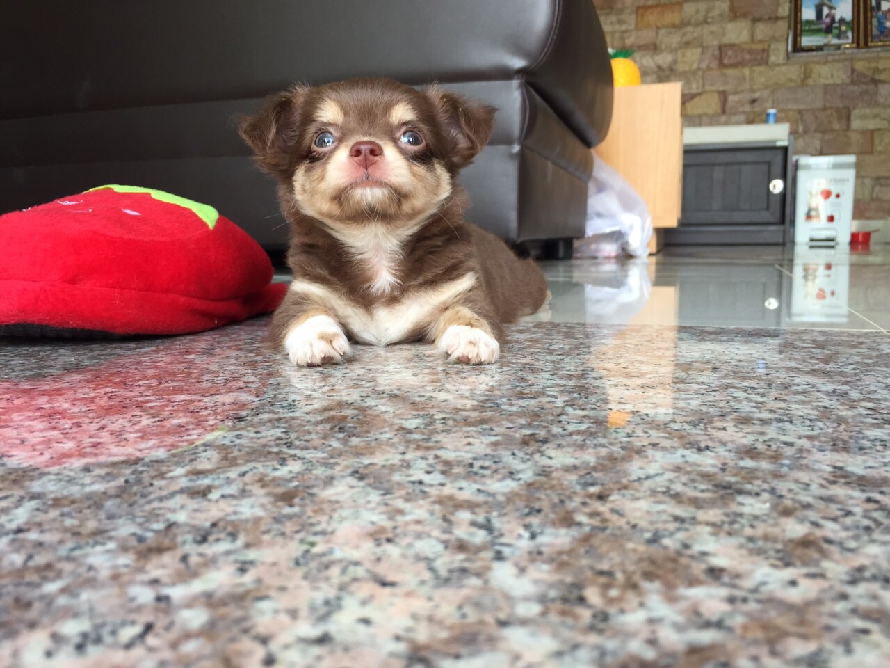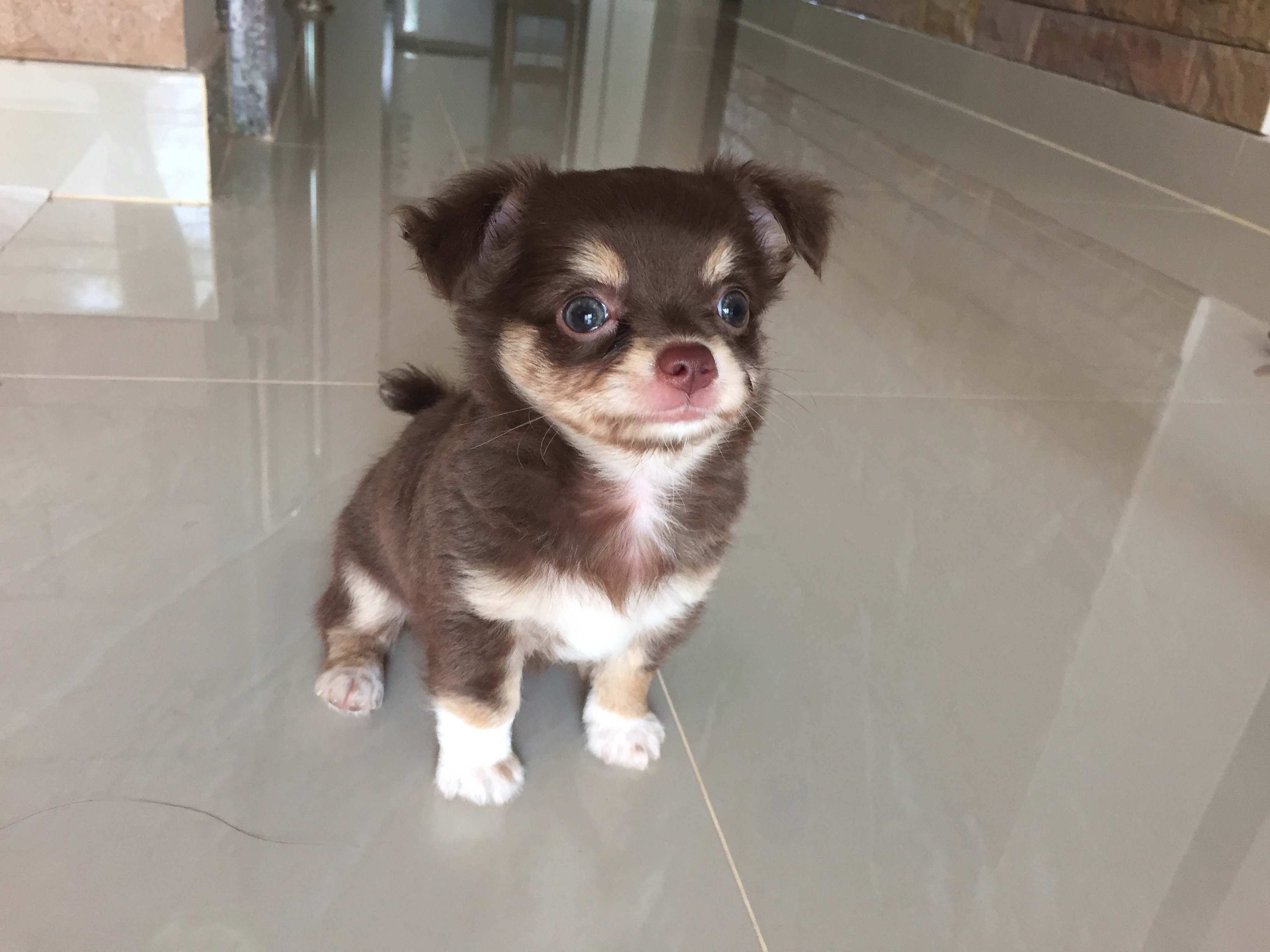 ชิวาวาเพศผู้ ขนยาว มาร์คสวย ขนแน่นสีช็อคโกแลตเข้ม&ครีมพร้อมใบเพ็ดดีจากสมาคมเต็มใบ
