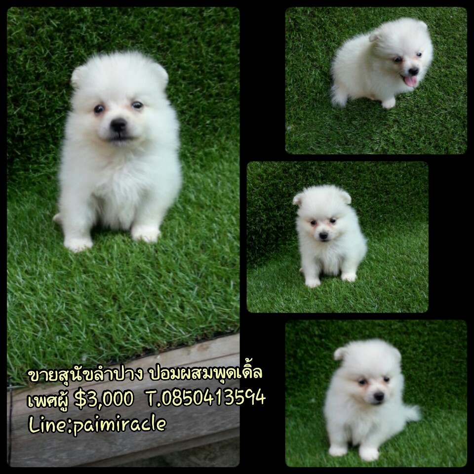 ปอมผสมพุดเดิ้ลเพศผู้2 จ๊ะพร้อมถ่ายพยาธิและฉีดวัคซีน เกิดวันที่ 1 กันยายน 2558 น่ารักแข็งแรง ทานอาหารเองได้แล้วนะค่ะ พร้อมย้ายบ้านจ๊ะลูกค้าที่อยู่ลำปางหรือจังหวัดใกล้เคียงมาดูเด็กๆได้ที่บ้านข้างเซนทรัลลำปางทางเรามีบริการจัดส่งและส่งทางเครื่องบินด้วยค่ะ