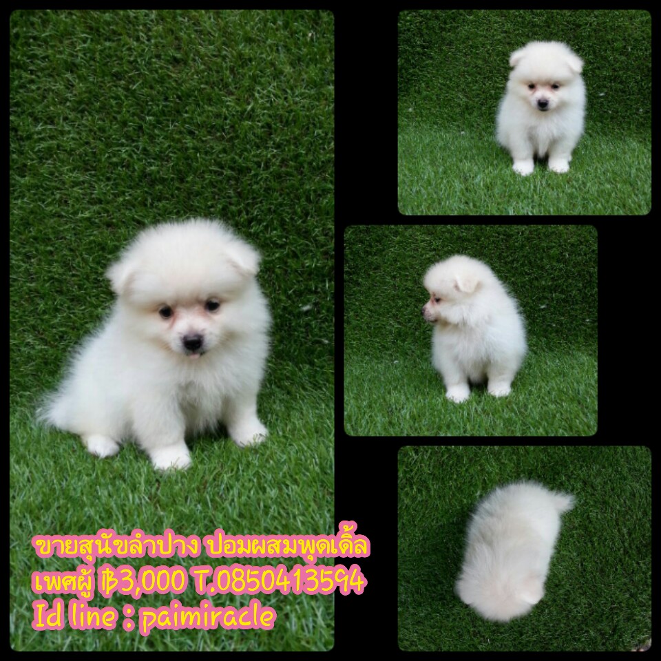ปอมผสมพุดเดิ้ลเพศผู้2 จ๊ะพร้อมถ่ายพยาธิและฉีดวัคซีน เกิดวันที่ 1 กันยายน 2558 น่ารักแข็งแรง ทานอาหารเองได้แล้วนะค่ะ พร้อมย้ายบ้านจ๊ะลูกค้าที่อยู่ลำปางหรือจังหวัดใกล้เคียงมาดูเด็กๆได้ที่บ้านข้างเซนทรัลลำปางทางเรามีบริการจัดส่งและส่งทางเครื่องบินด้วยค่ะ