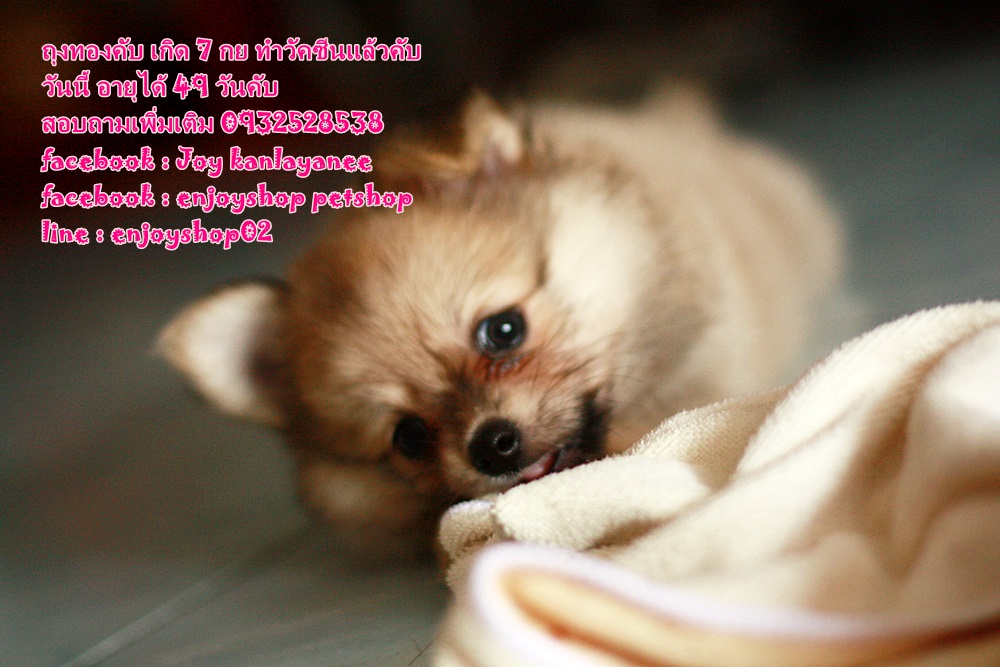 พี่ถุงทอง ชิวาวาปอม ไซด์เล็ก เพศชาย เกิดวันที่ 7 กย สุขภาพแข็งแรง เล่นเก่ง ซน กินเก่ง ทำวัคซีน + ถ่ายพยาธิแล้วนะค่ะ สนใจสอบถามเพิ่มเติมได้ค่ะ 0932528538 line: enjoyshop02 facebook:enjoyshop petshop facebook:Joy kanlayanee