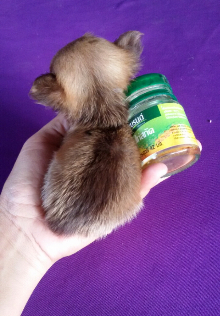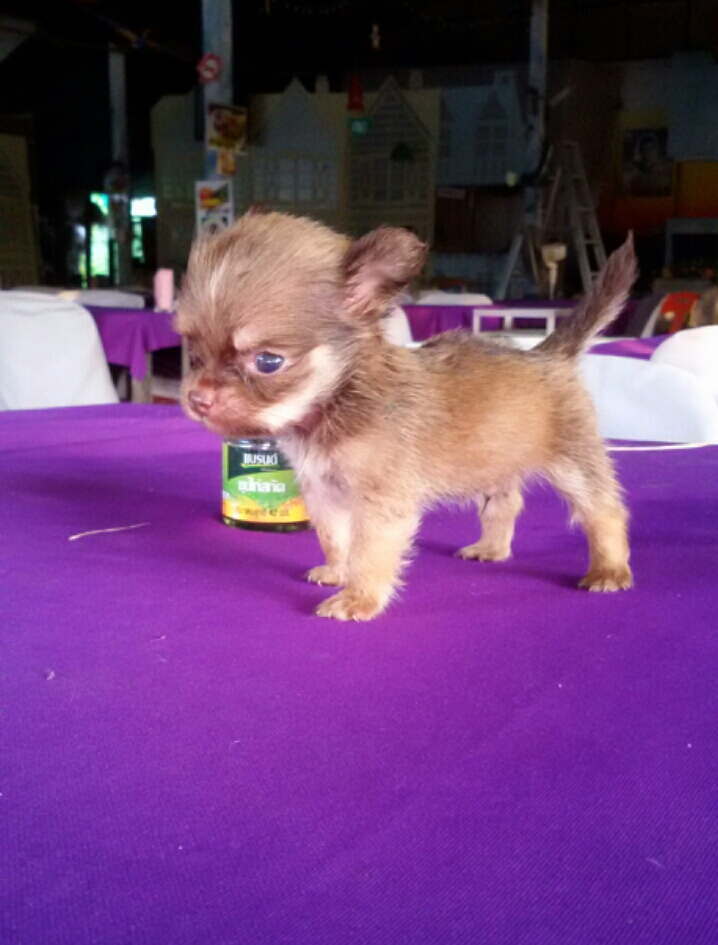 ชิวาวาขนยาวเพศผู้ ไซร์ทีคัพ สีน้ำตาลช๊อค (น้องตุ้มตุ้ย)