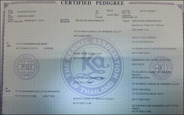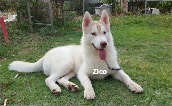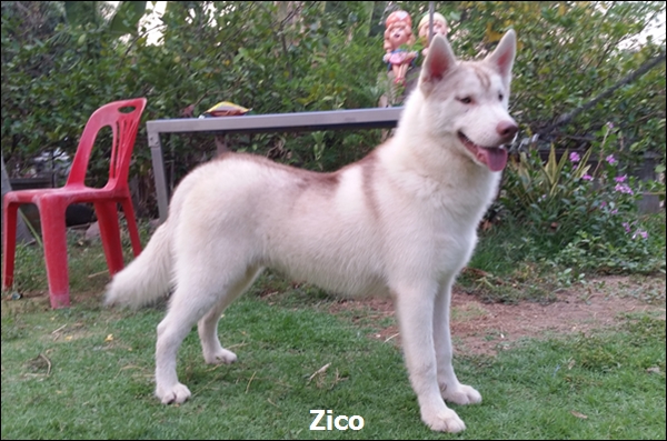 Zico หนุ่มหล่อสี light-red ตาสีอัลมอลล์ เป็นSiberian Husky ที่โครงสร้างดี และสายเลือดเยี่ยมตัวหนึ่ง