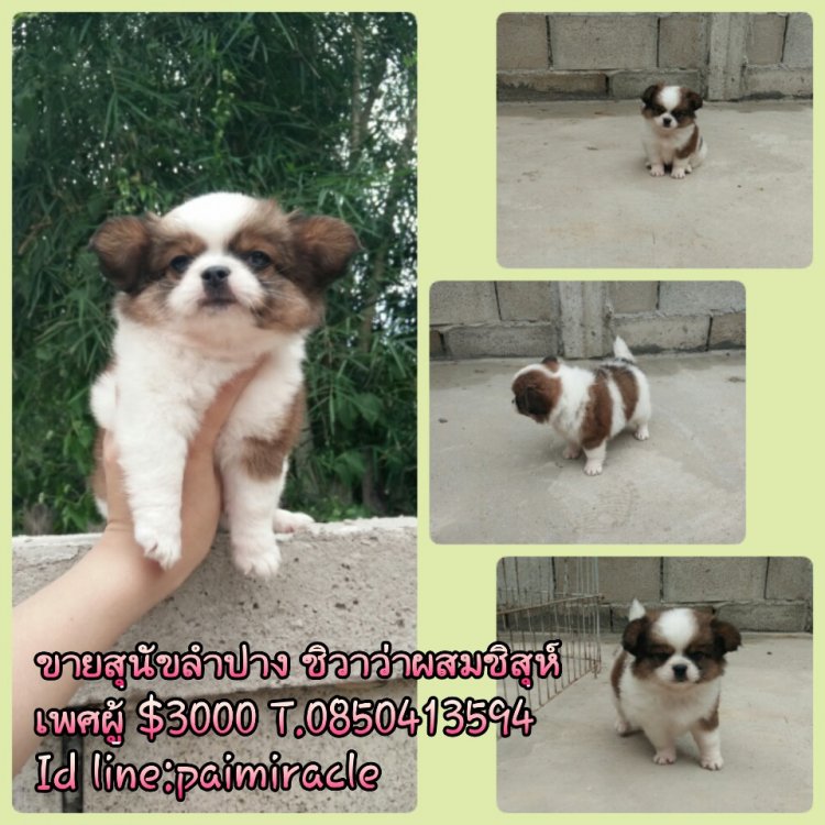 ชิวาว่าผสมชิสุห์เพศผู้ จ๊ะพร้อมถ่ายพยาธิ เกิดวันที่ 9 กันยายน 2558 น่ารักแข็งแรง ทานอาหารเองได้แล้วนะค่ะ พร้อมย้ายบ้านจ๊ะลูกค้าที่อยู่ลำปางหรือจังหวัดใกล้เคียงมาดูเด็กๆได้ที่บ้านข้างเซนทรัลลำปางทางเรามีบริการจัดส่งและส่งทางเครื่องบินด้วยค่ะ