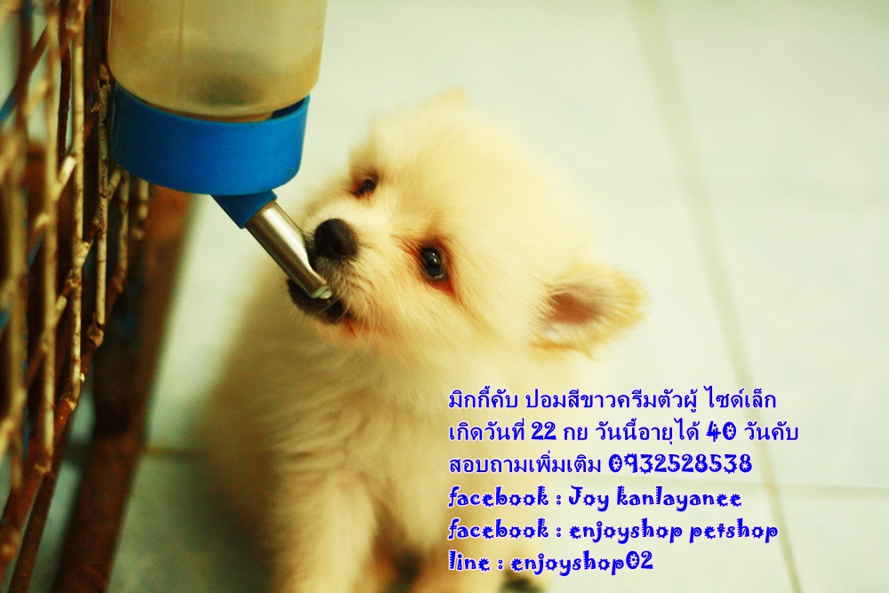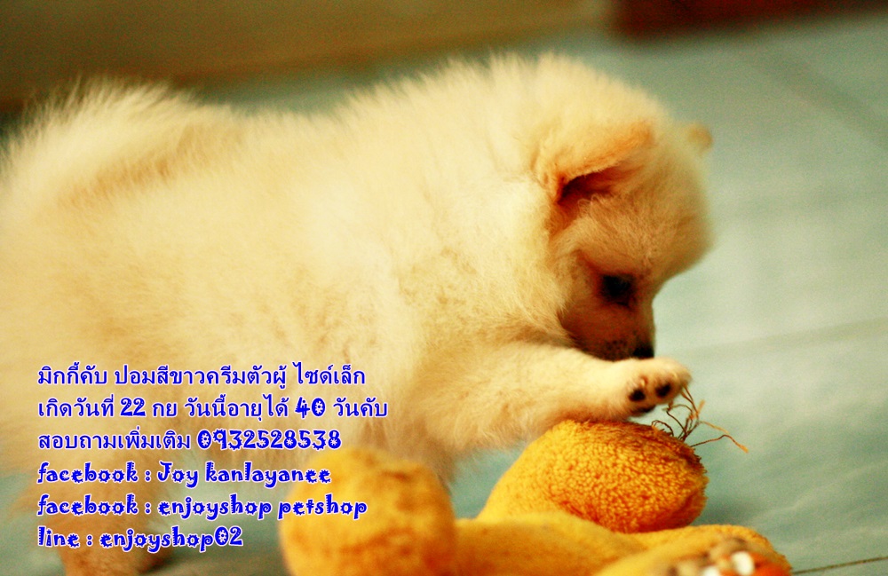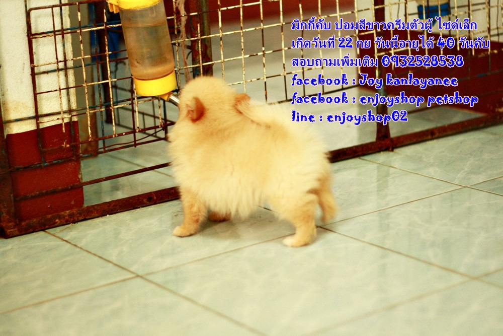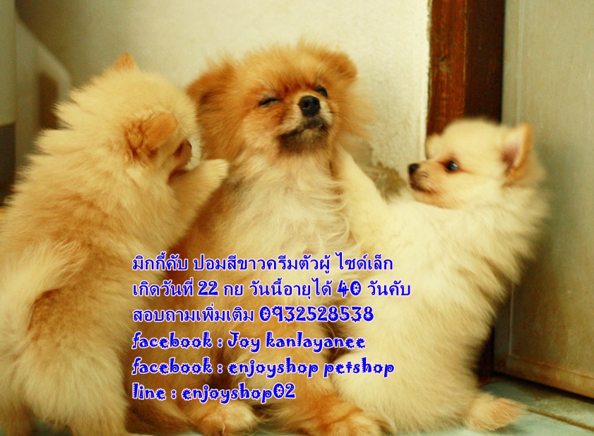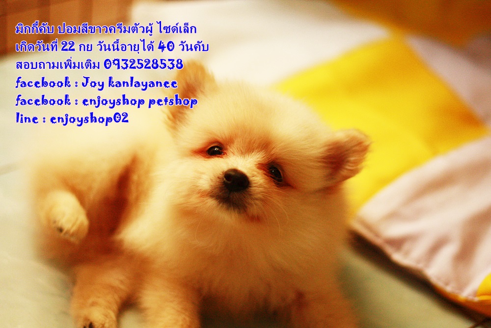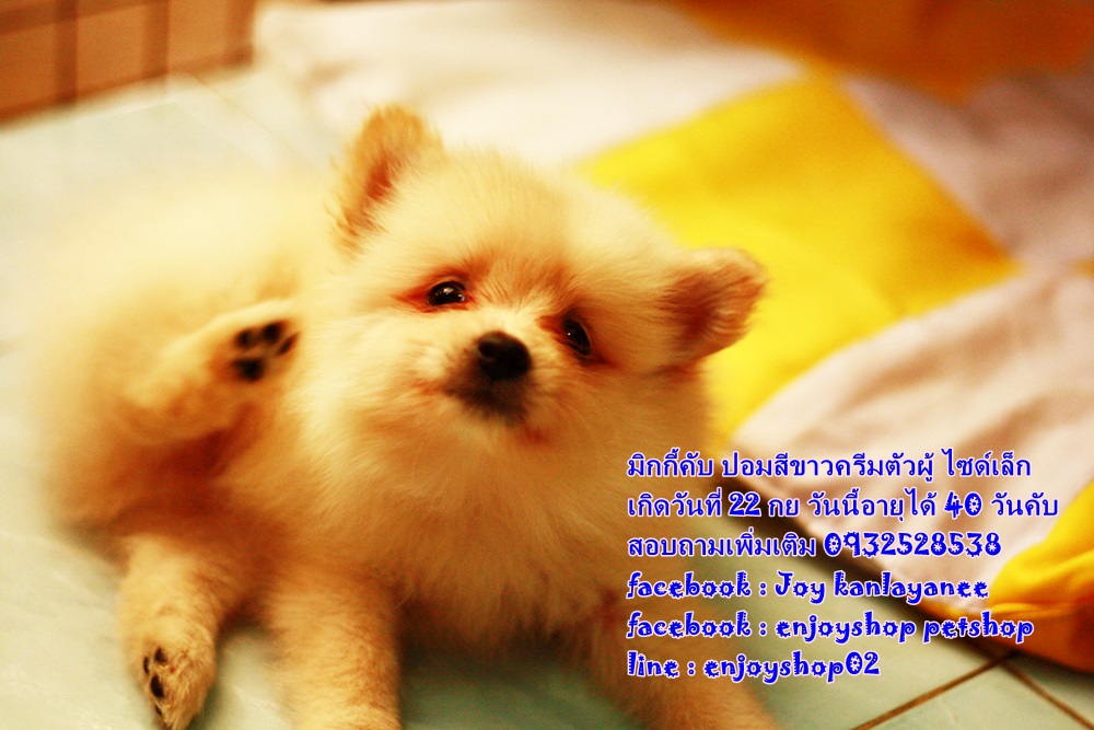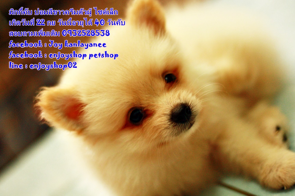 มิกกี้ ปอมตัวผู้ สีครีม เกิดวันที่ 22 กย ยังรอบ้านใหม่ค่ะ มิกกี้แข็งแรง ซน กินเก่ง นอนเก่ง วันนี้น้องอายุได้ 40 วันค่ะ สนใจสอบถามเพิ่มเติม 0932528538 facebook : Joy kanlayanee facebook : enjoyshop petshop line : enjoyshop02 น้องอยู่สันป่าตอง เชียงใหม่ค่ะ มารับเอง 5500 บริการส่งต่างจังหวัด(เฉพาะที่มีสนามบินค่ะ) 6900 บาท ราคานี้ไม่เสียค่าใช้จ่ายเพิ่มค่ะ ถ่ายพยาธิฟรี วัคซีนเข็มแรกฟรี บล็อคส่งขึ้นเครื่องฟรี ค่าขึ้นเครื่องฟรีค่ะ
