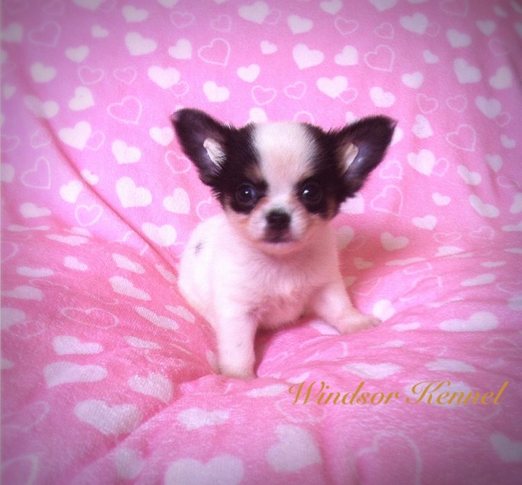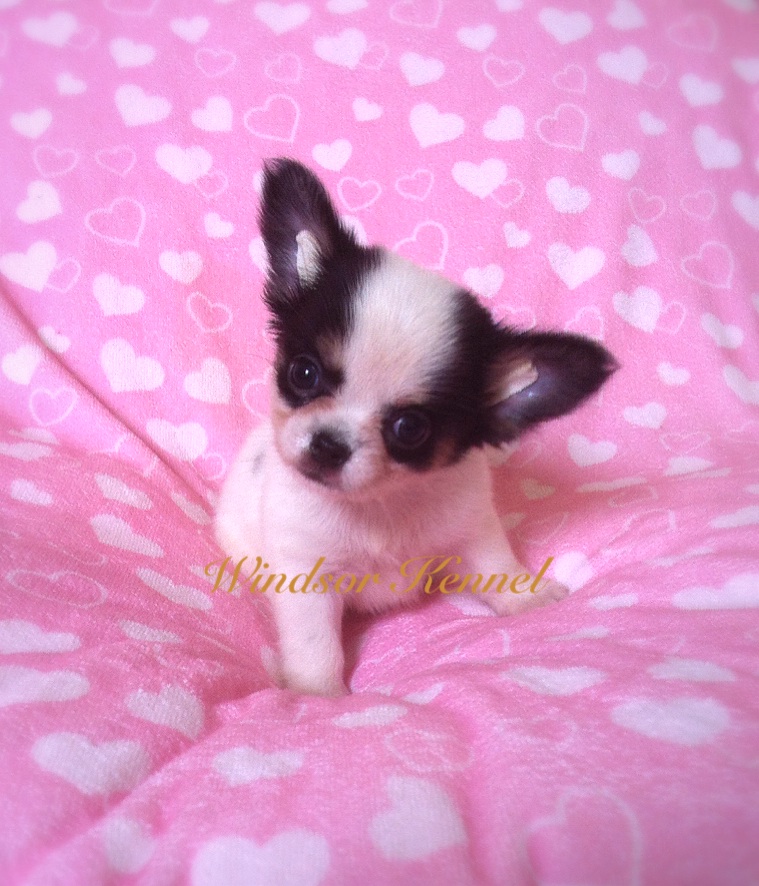 น้องฮิมาชิ ชิวาวาเพศผู้ ขนยาว สิขาว-ดำ มีคิ้ว ลายสวย แป็ะ สายเลือดซ็อค ไชต์เล็ก น่าสั้น หัวกลมๆ ตัวเล็กๆสั้นๆ