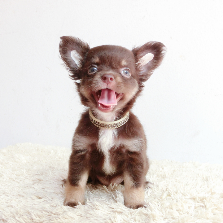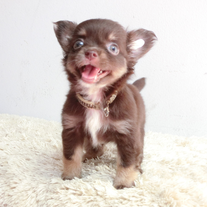 LITTLE DOG'S FARM : จองแล้วค่ะ สาวน้อยชิวาวาสีชอคโกแลตแอนด์แทน มีคิ้วมีแก้ม วัคซีน2เข็มค่ะ