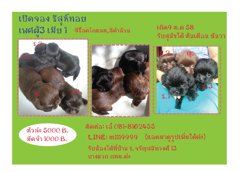 ขายลูกสุนัข ชิสุห์ทอยหายาก สีดำล้วน ,สีช็อคโกแล็ต