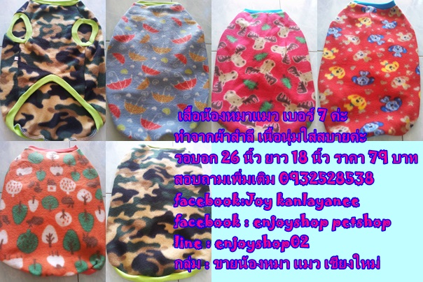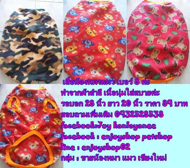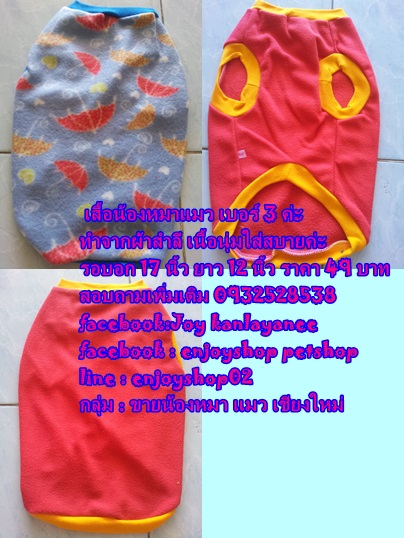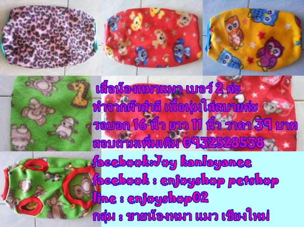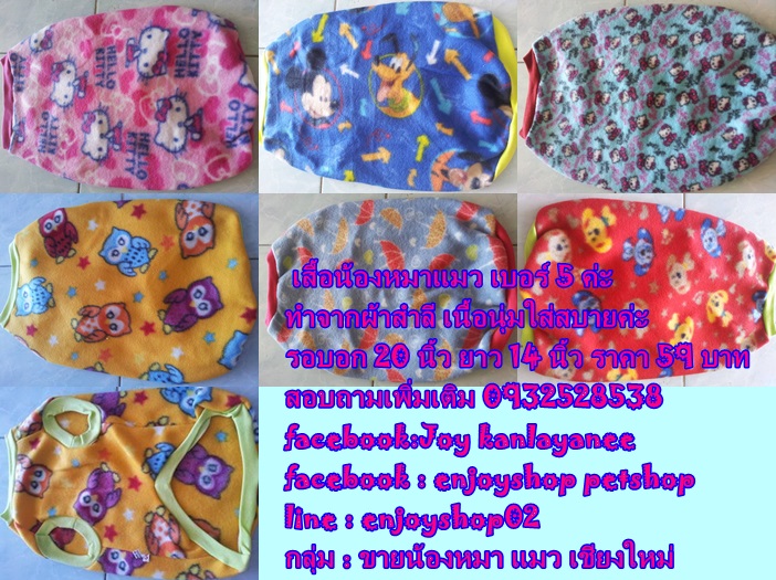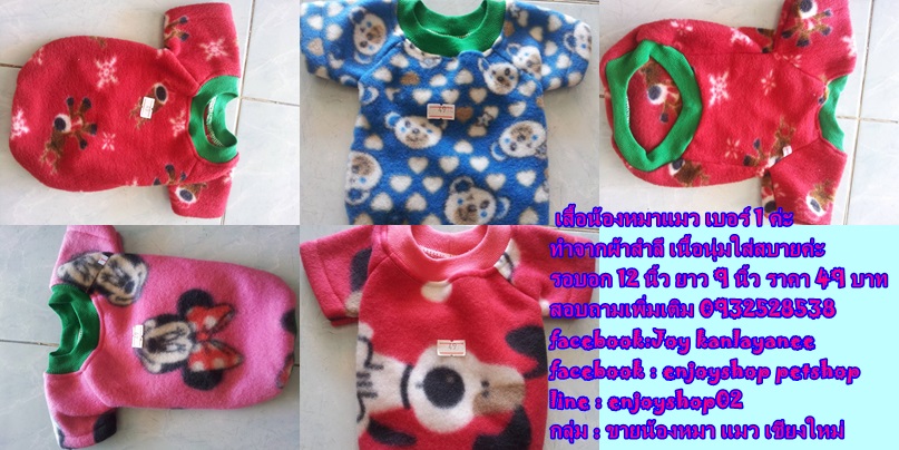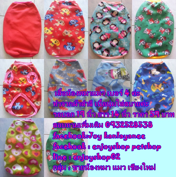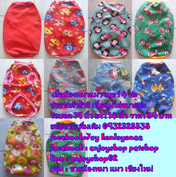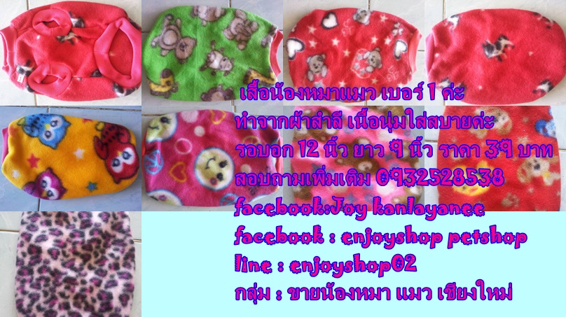 เสื้อกันหนาวผ้าสำลี สำหรับน้องหมา แมว ฯลฯ มาแล้วค่ะ เริ่มต้นที่ราคา 29 บาท มีตั้งแต่ เบอร์ 0-10 ค่ะ ซื้อ 2 ตัว ขึ้นไป ลดราคาส่งฟรีค่ะ สอบถามลายระเอียดเพิ่มเติมได้นะค่ะ ที่ เบอร์ 0932528538 facebook : Joy kanlayanee /facebook : enjoyshop petshop / กลุ่ม ขายน้องหมา แมว เชียงใหม่ /line : enjoyshop02