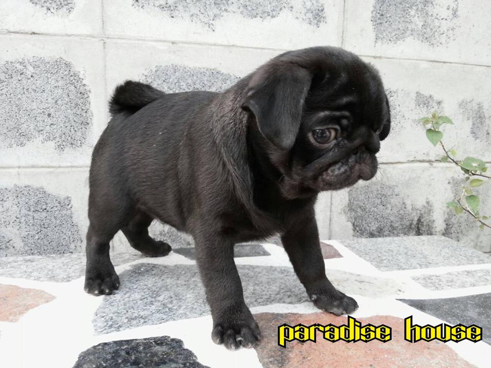 (น้องย้ายบ้านแล้วครับ)ชุดล่าสุดเลยครับ ลูกPugดำ ลูก (โลมา ) เพศผู้ ริงเกิ้ลเต็ม สวยๆเลย