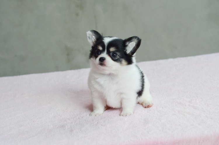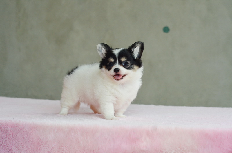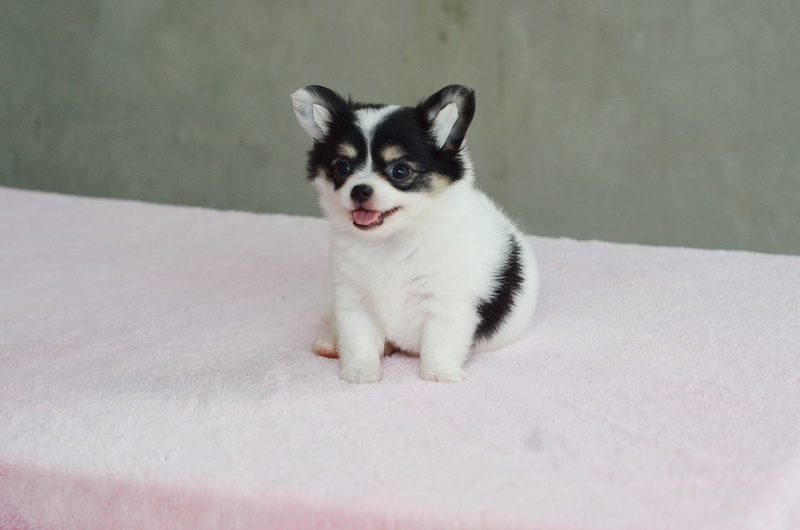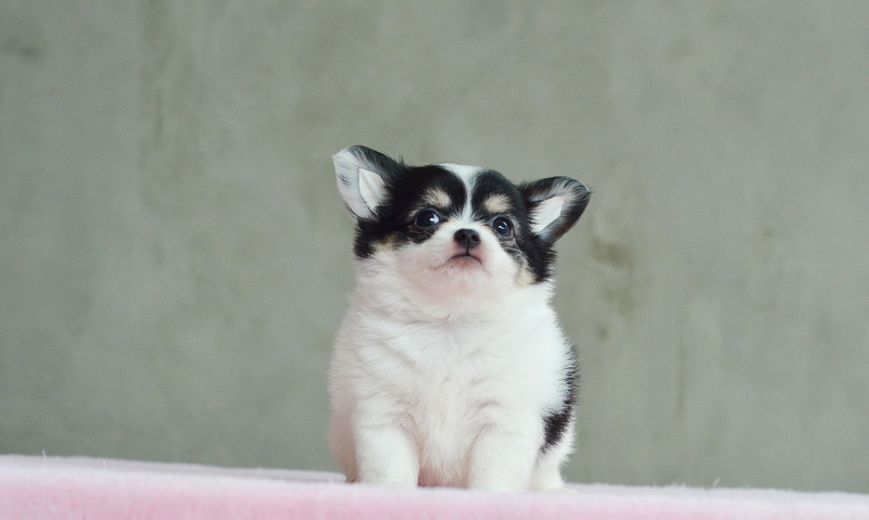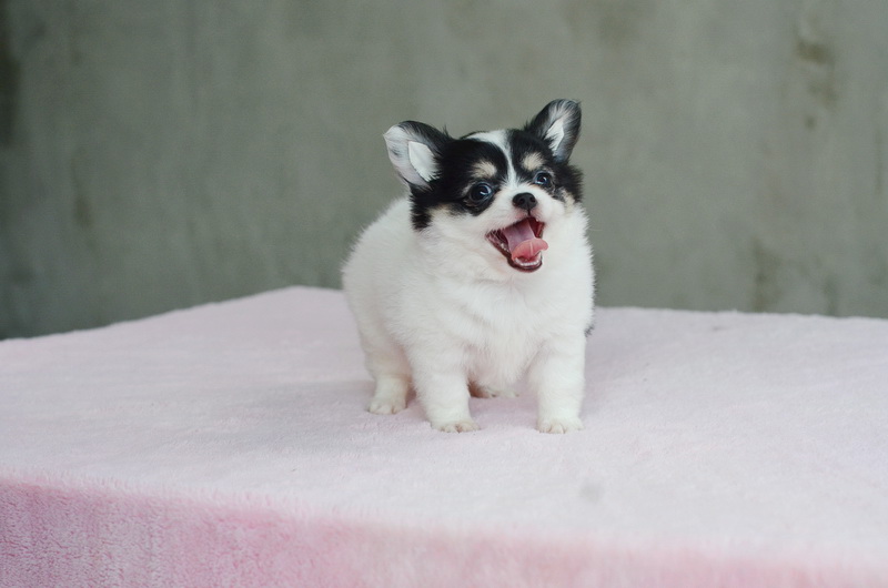 น้องปุยปุย ชิวาวาขนยาวสีขาวดำมีคิ้ว น่ารักมาก