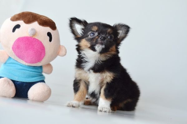 ชิวาวาเพศเมียขนยาวสีแบลคแทนมีคิ้ว หัวโตหน้าสั้นตากลมน่ารัก ขาสั้นหุ่นสวย ไซด์เล็ก