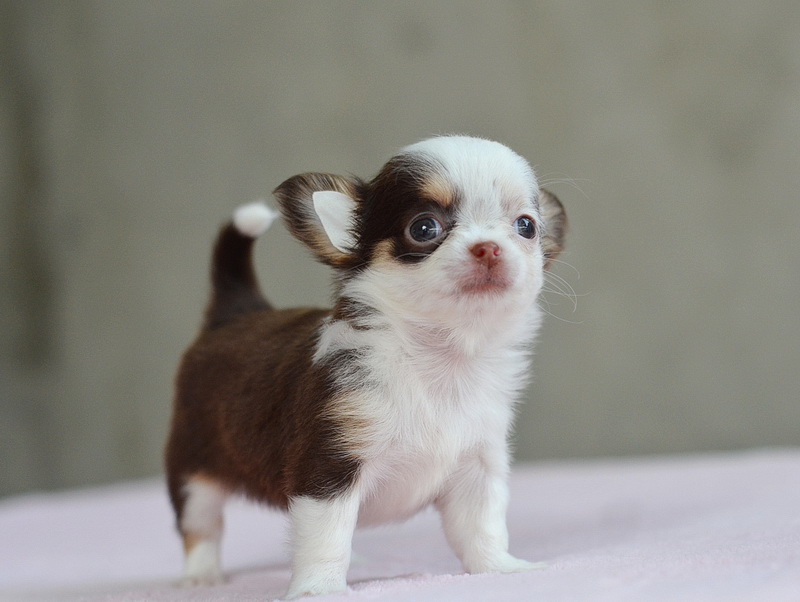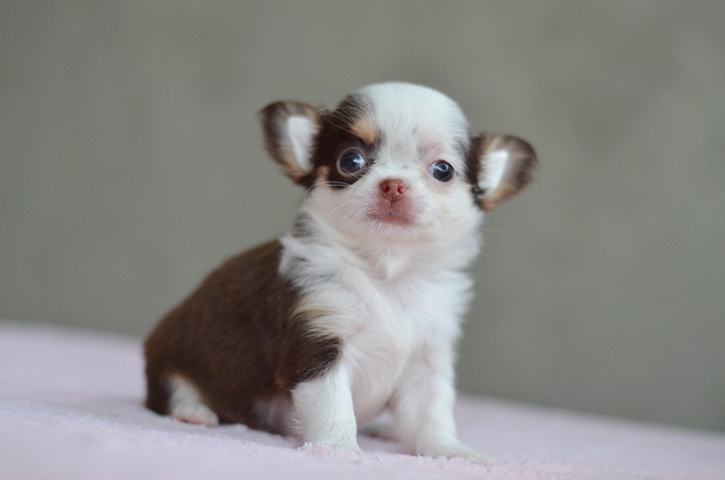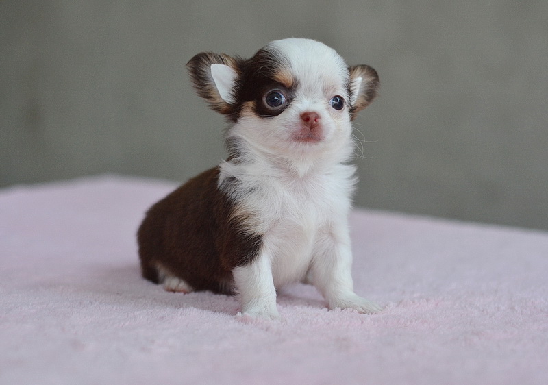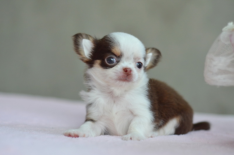 ชิวาวาเพศเมียขนยาวสีชอคโกแลต มาร์กโมเช่น่ารัก