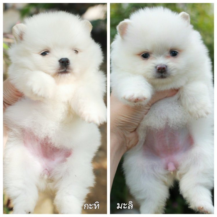 ปอมเมอเรเนี่ยนแท้ สีขาวสำลี เพศเมียสองสาว