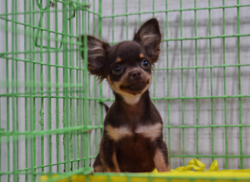 ชิวาวาเพศเมีย ขนยาว สีชอคโกแลตแทน หัวโตหน้าสั้นตากลมน่ารัก ขาสั้นหุ่นสวย