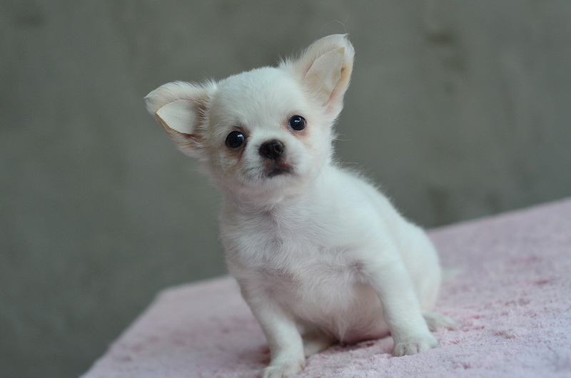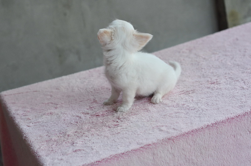 ★^-^*★ WWW.WOWWCHIHUAHUA.COM★^-^*★.... ชิวาวาเพศเมียขนยาวสีขาวครีม หน้าสั้นหัก น่ารักมากๆ
