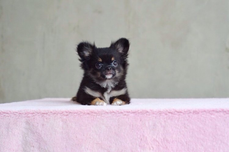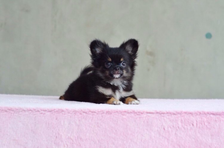ชิวาวาเพศผู้ขนยาวสีแบลคแทน หัวโตหน้าสั้นตากลมน่ารัก ขนแน่นมากขาสั้นหุ่นสวย