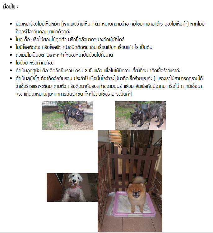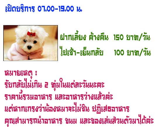 ใช้สำเนาบัตรประจำตัวประชาชน 1 ใบเท่านั้น และน้องหมาต้อง ฉีดวัคซีนรวม เรียบร้อยแล้วด้วยค่ะ อย่าลืมโทรมาสอบถาม และนัดหมายก่อนฝากเลี้ยงนะคะ ที่โทร 086-5439555