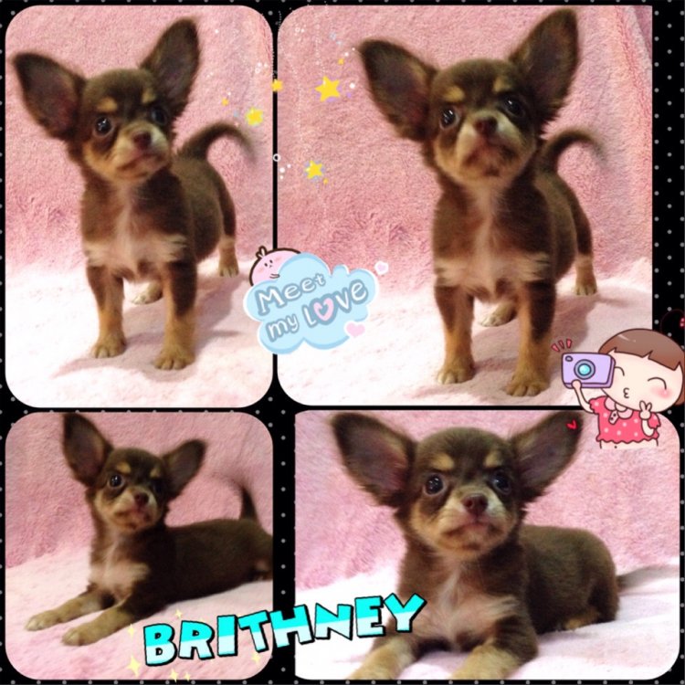 "น้องบริทนีย์" ชิวาวาเพศเมียขนยาวสีชอคแทน มาร์กสวยถุงเท้าขาว หัวโตหน้าสั้นตากลมน่ารัก ขนแน่น ขาสั้นหุ่นสวย