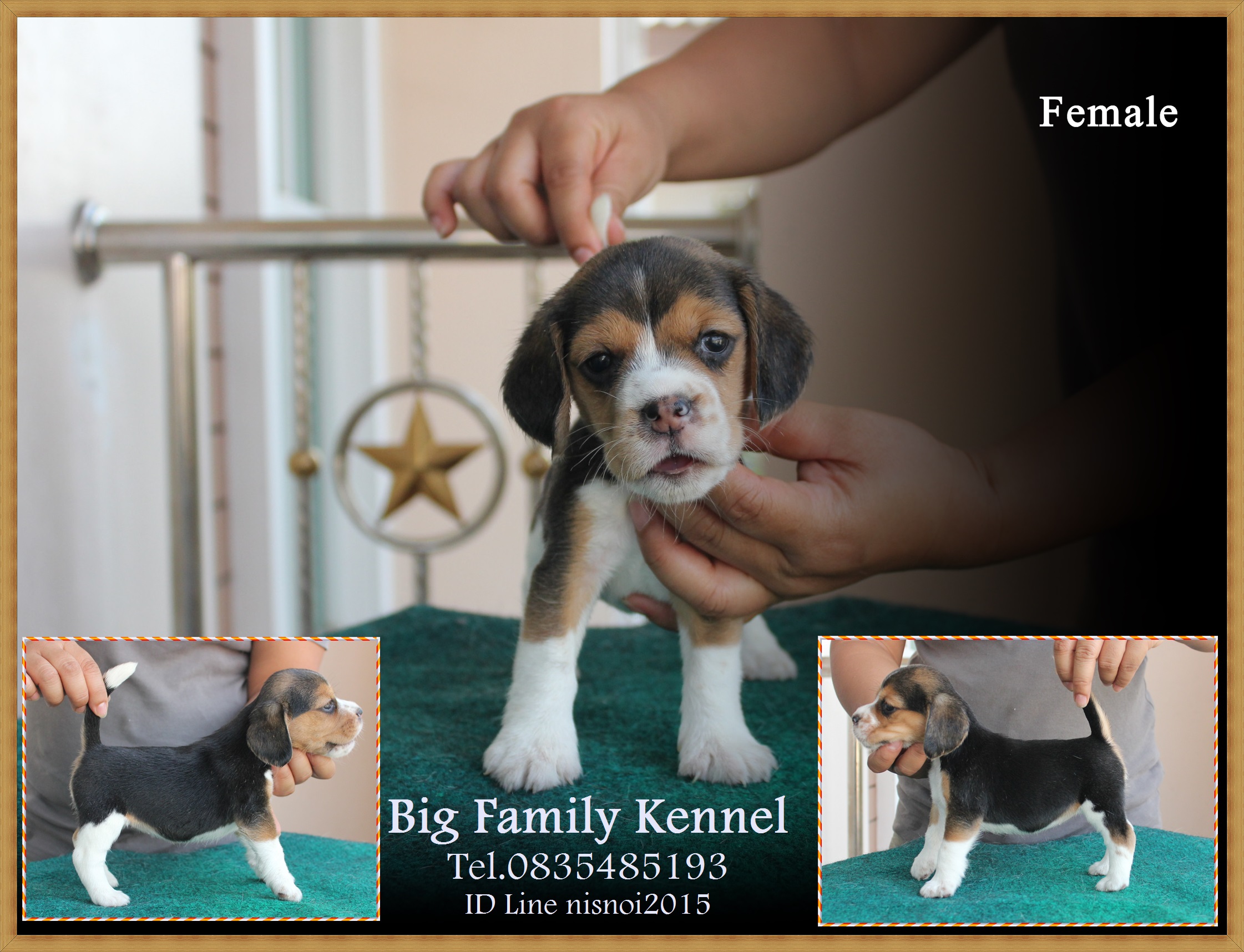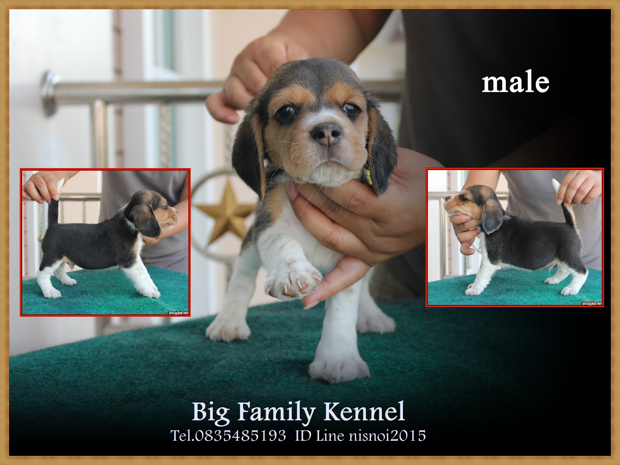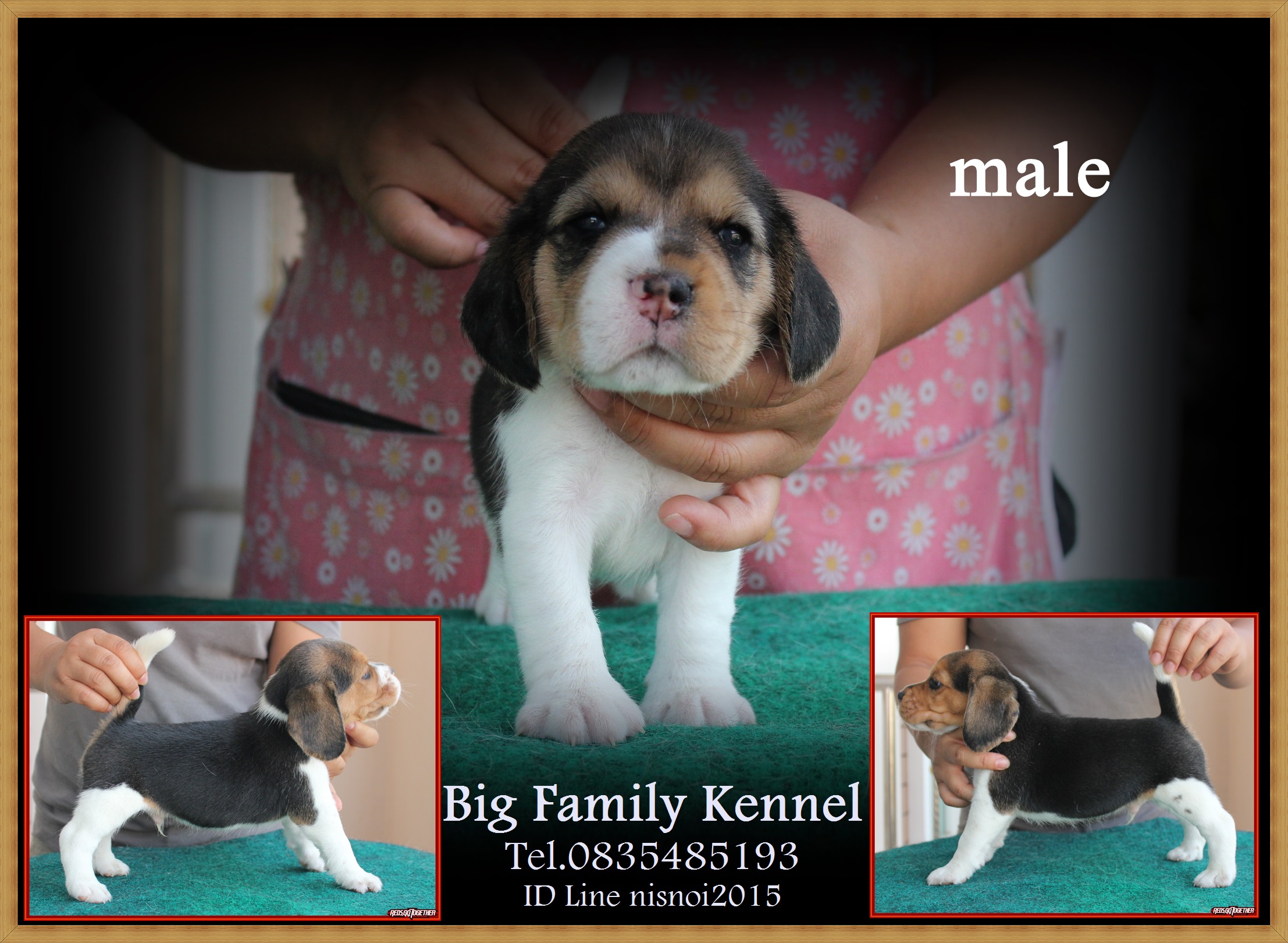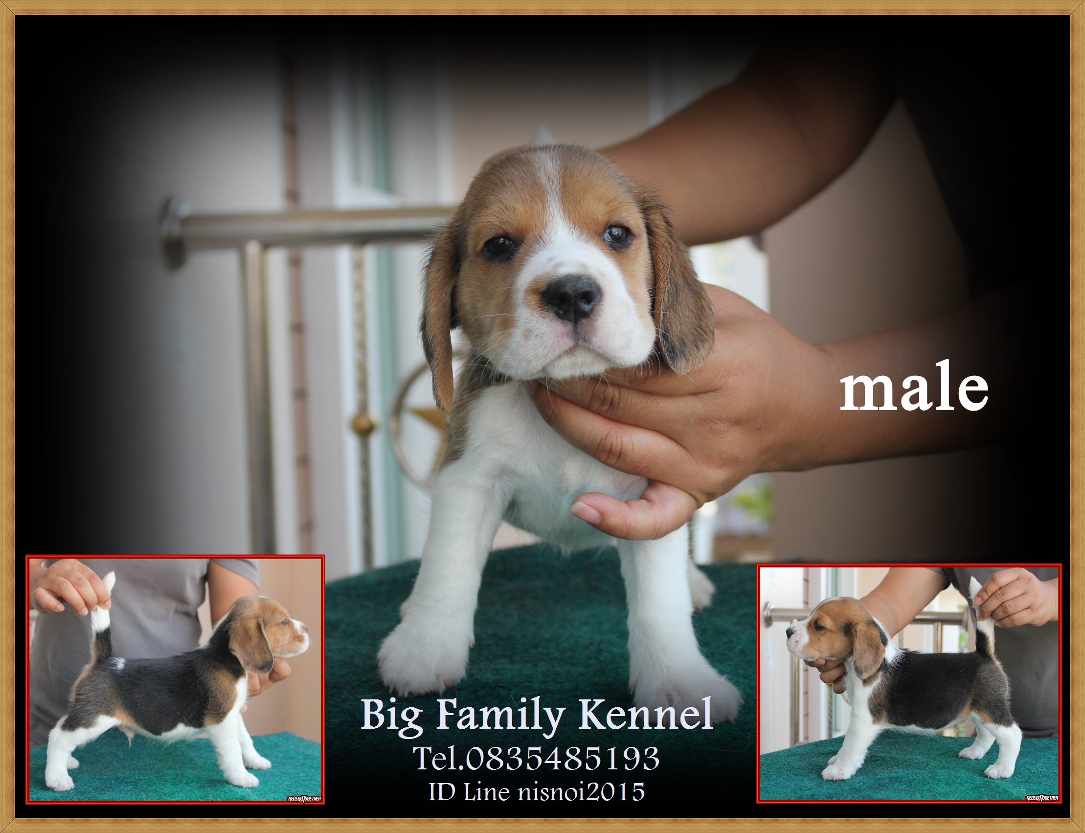 บีเกิ้ลสามสี เพศผู้ มี 4 ตัว เพศเมีย 3 สายพันธุ์อเมริกันแชมป์เปี้ยน เด็กๆ ชุดนี้เกิด 25 พฤศจิกายน 2558 เกิดวันดีมากค่ะ วันลอยกระทงพอดีเลย ฟาร์มของเราเลี้ยงและอนุบาลลูกสุนัขในห้องแอร์ เสริมด้วยนมแพะและอาหารเกรดพรีเมียม กระตุ้นวัคซีนรวม ถ่ายพยาธิ และตรวจสุขภาพด้วยสัตวแพทย์ค่ะ สนใจชมเด็กๆ ได้ตามลิงค์ข้างล่างค่ะ ชุดนี้ราคา 10,000 บาท